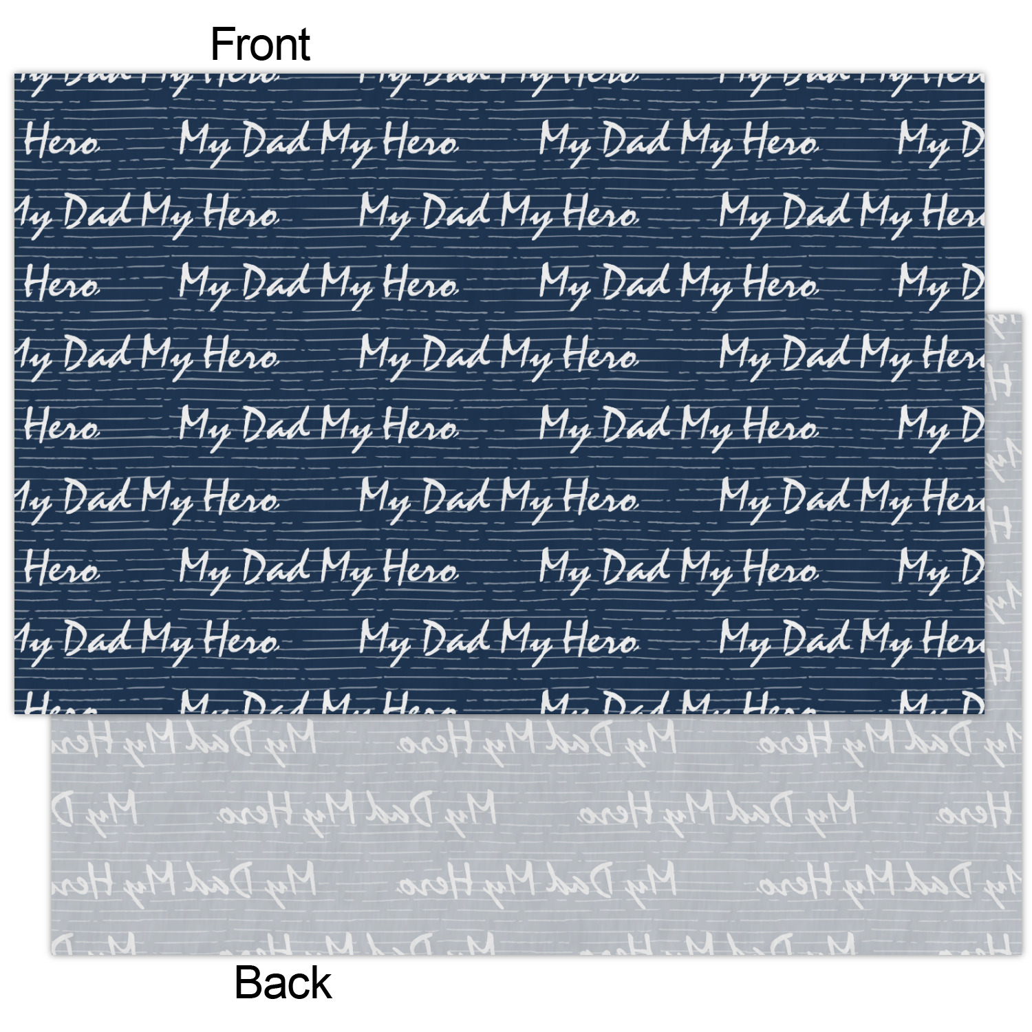 The background of this design is a fun word cloud that says different words to describe a father like "friend," "thanks," "father's day," "happiness," and more. The design is filled with a few different shades of blue and a little accent of white. The main graphic is a quote that says "Dad, a son's first hero, a daughter's first love." What a sweet design for Father's Day!