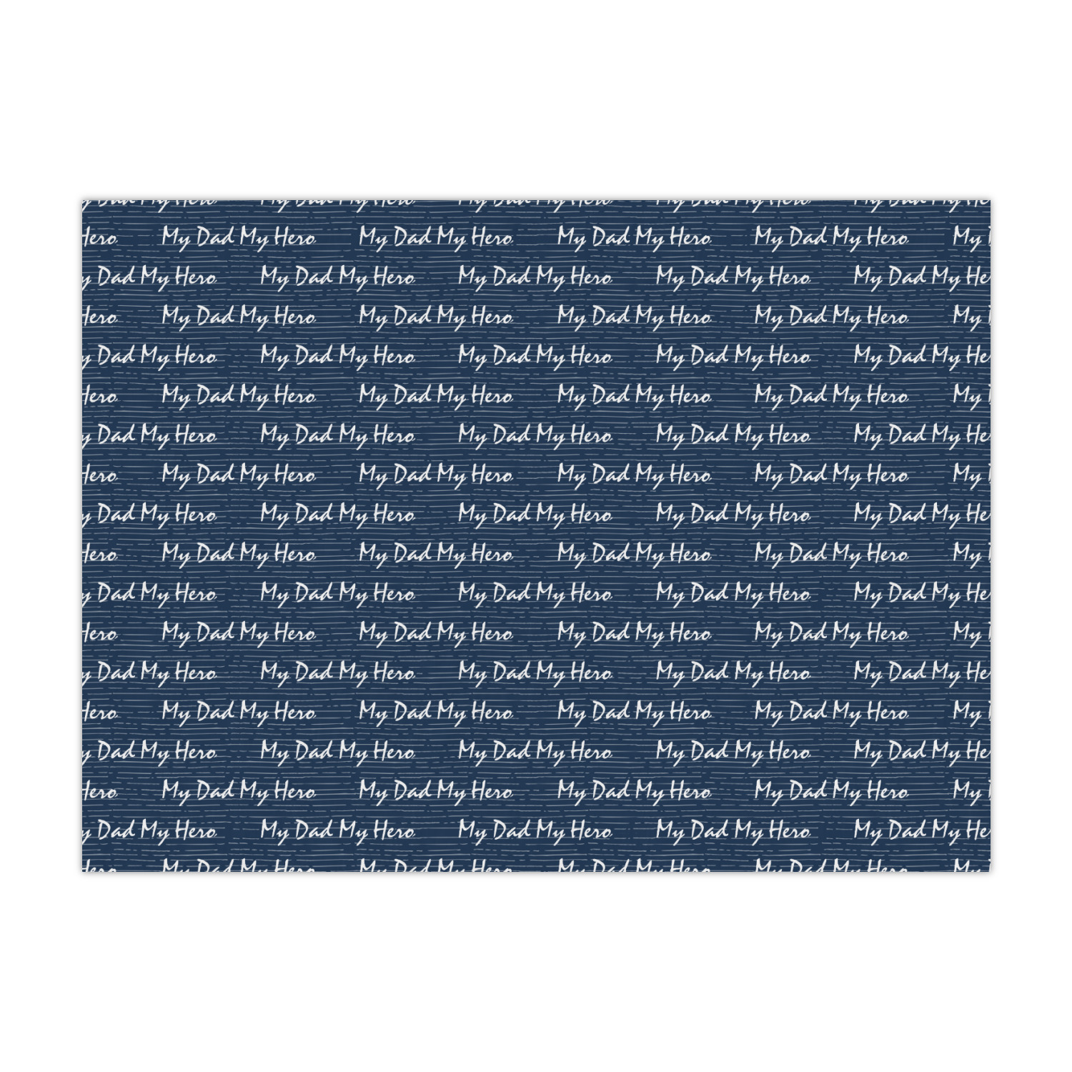 The background of this design is a fun word cloud that says different words to describe a father like "friend," "thanks," "father's day," "happiness," and more. The design is filled with a few different shades of blue and a little accent of white. The main graphic is a quote that says "Dad, a son's first hero, a daughter's first love." What a sweet design for Father's Day!