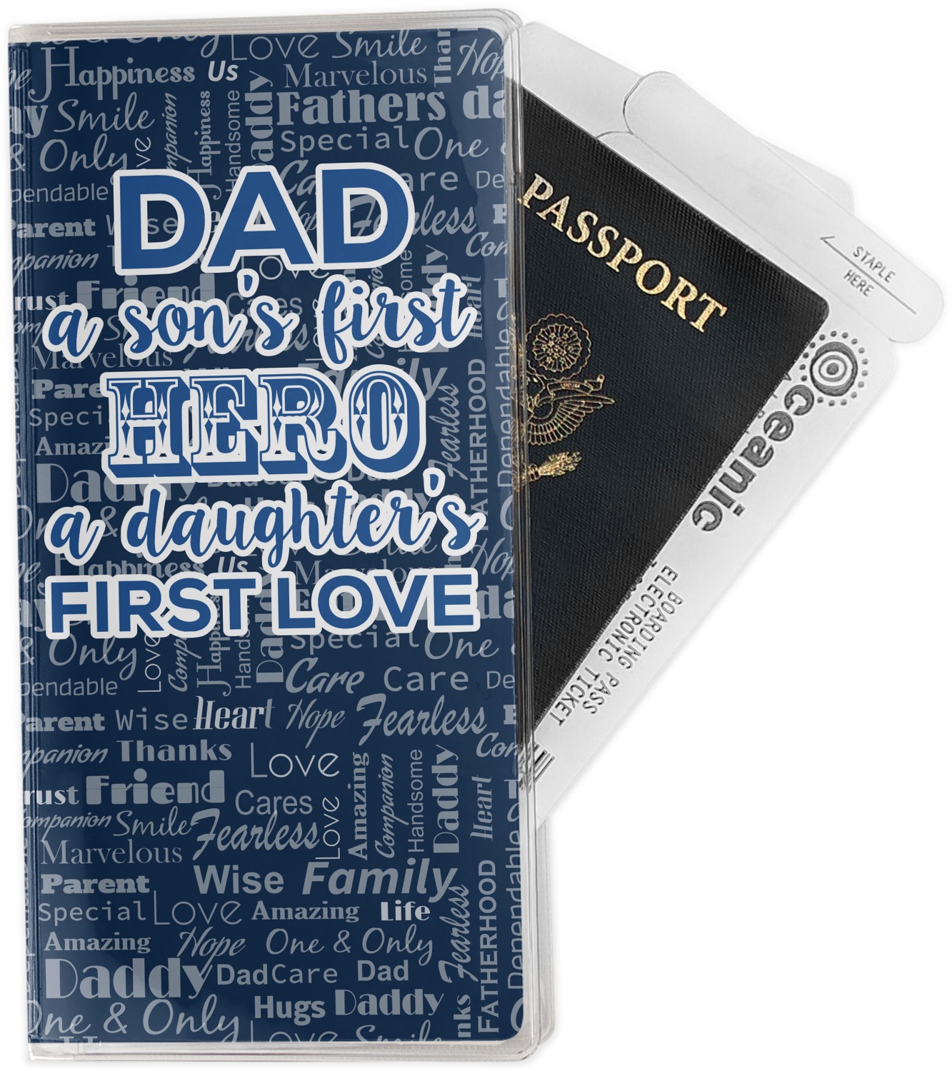 This document holder is really sturdy and has your personalized design inserted right behind all of your nifty pockets, so you can see it on the front and back covers. There are two large pockets and two shorter pockets inside. The larger pockets are tall enough to keep your boarding pass nice and straight. The smaller pockets (on top of the large pockets) are large enough to fit your passport, credit card, or ID.