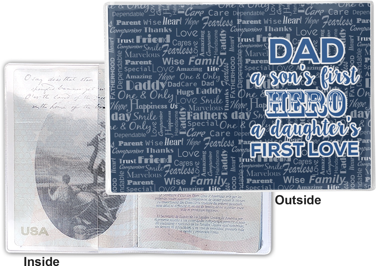 This cover is made of a sturdy clear vinyl with a personalized vinyl insert inside. There is a large and a small pocket on either side to hold the covers of your passport easily and firmly. The passport holder is approximately 7.5" x 5.25", the perfect size to snugly fit your passport. This slim cover is the perfect way to protect your passport without being one more bulky item you have to carry.
