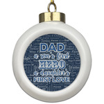 The background of this design is a fun word cloud that says different words to describe a father like "friend," "thanks," "father's day," "happiness," and more. The design is filled with a few different shades of blue and a little accent of white. The main graphic is a quote that says "Dad, a son's first hero, a daughter's first love." What a sweet design for Father's Day!
