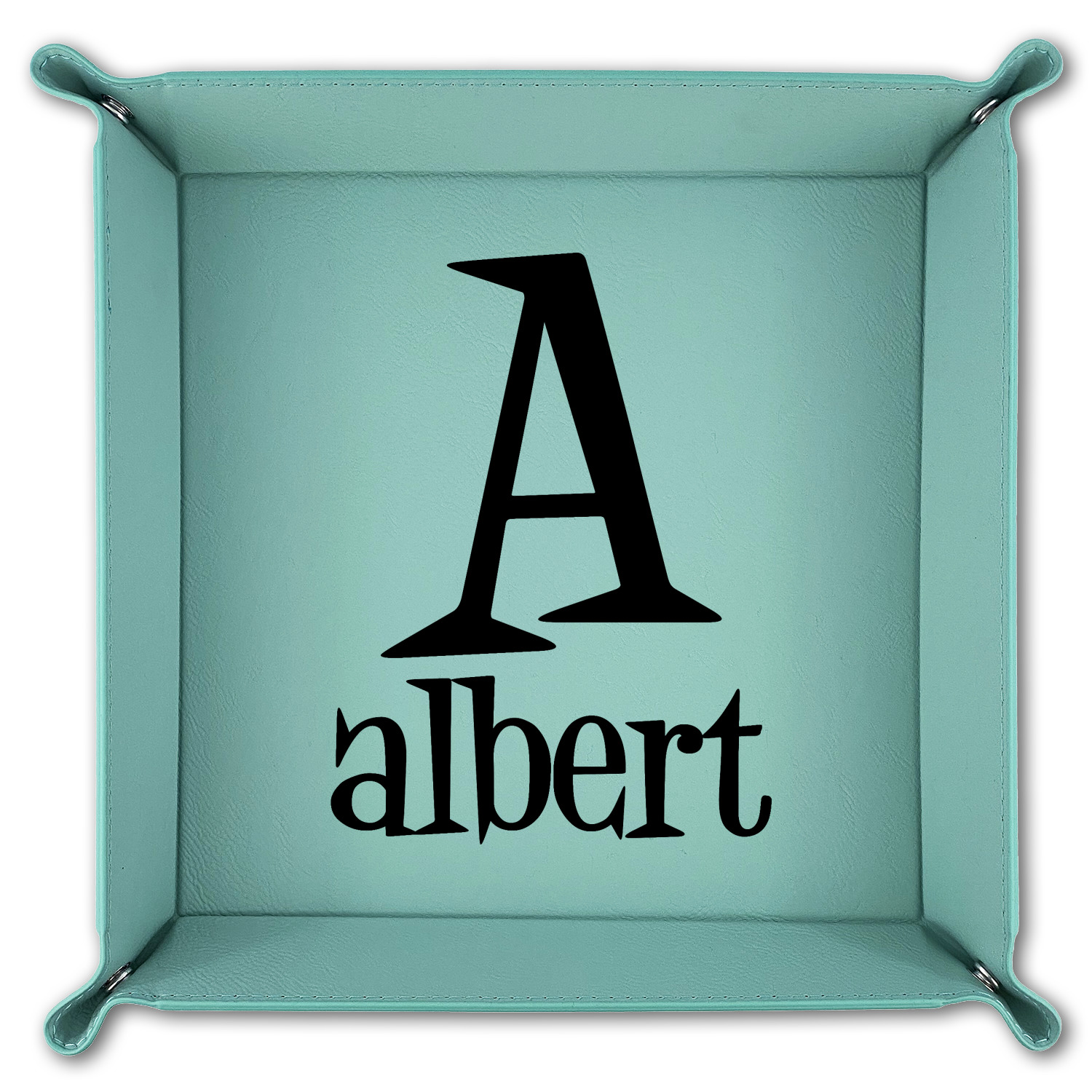 The leatherette wraps the hard board base and sides with flexible hinges to fold the sides up. The corners are secured using silver snaps. The 6in x 6 in tray measures approximately 9.5in x 9.5in when laid flat. The 9in x 9in tray measures approximately 13in x 13in when laid flat.