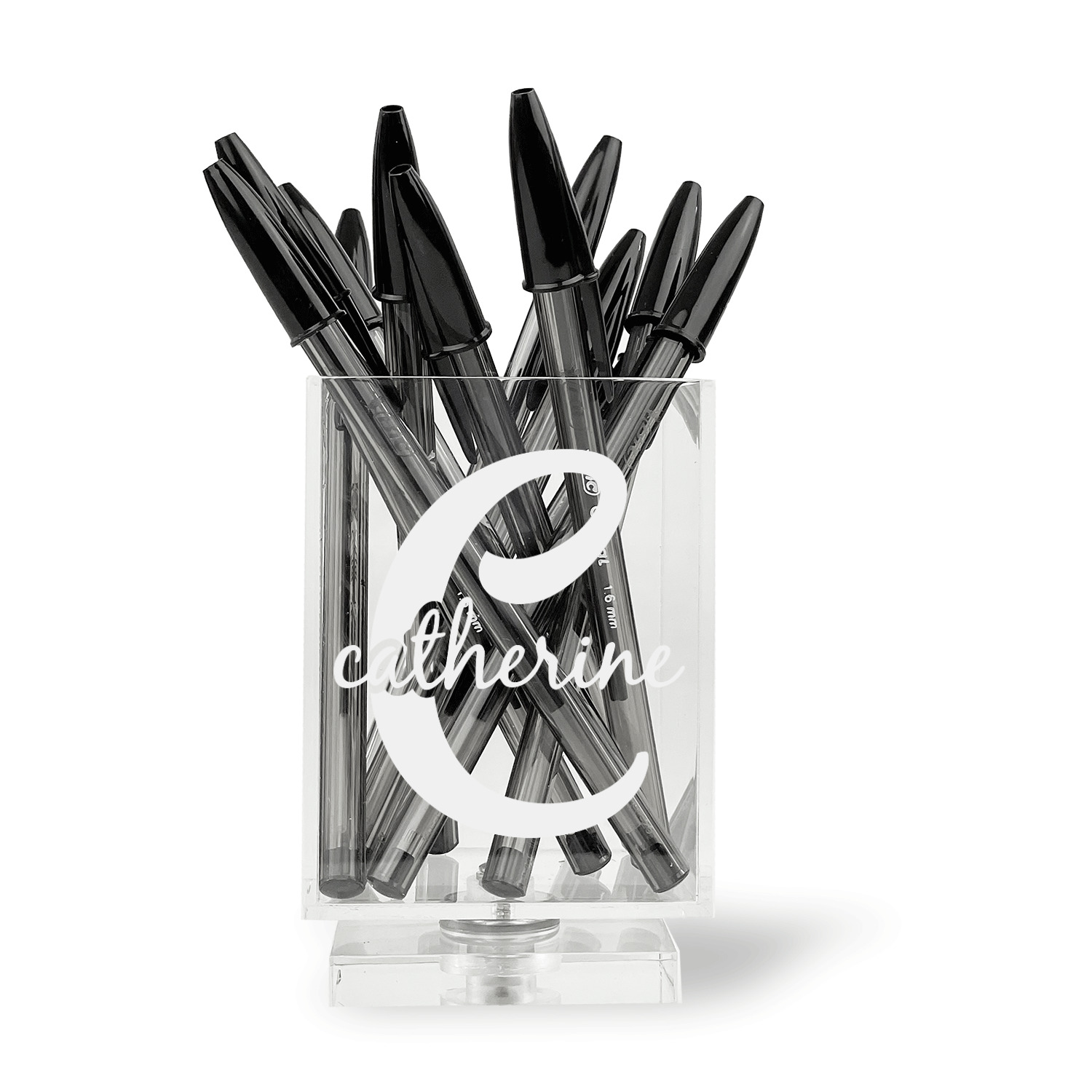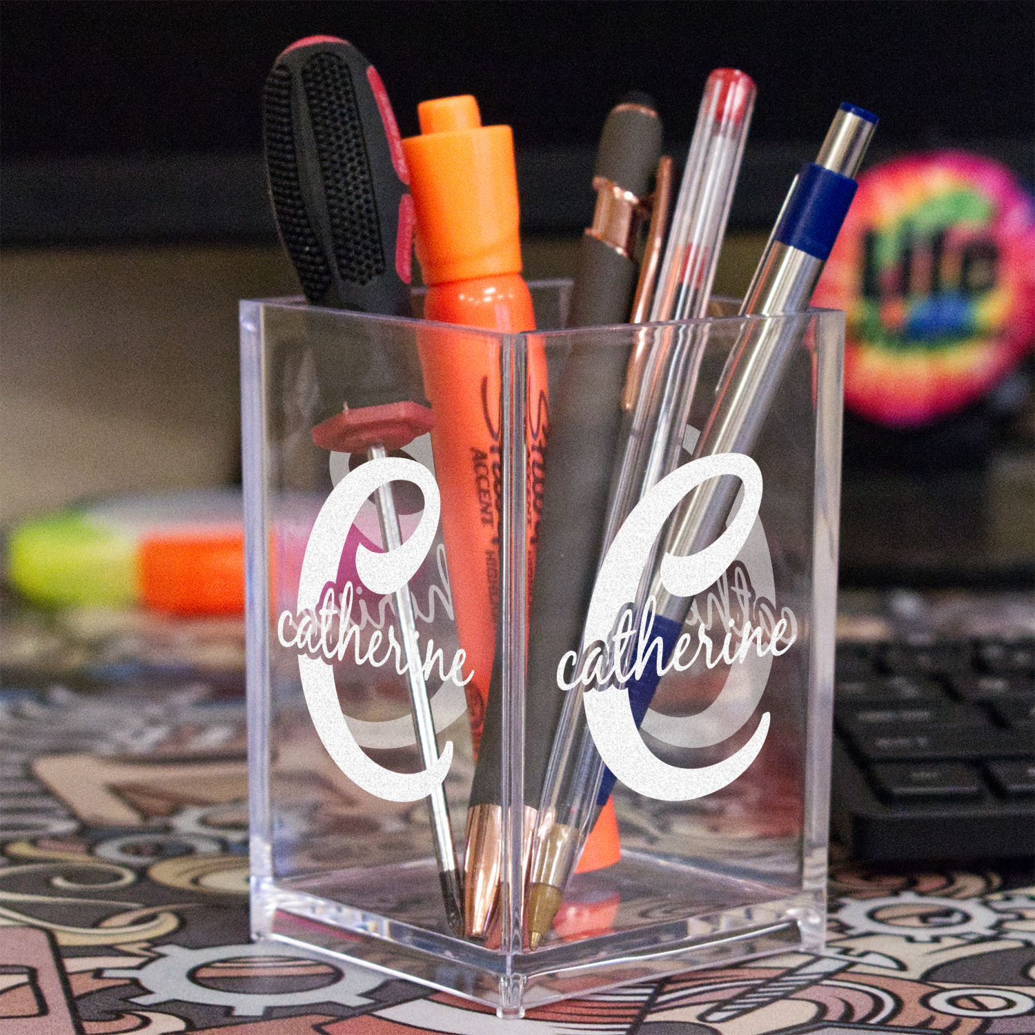 Add a great accessory to your desk with one of these acrylic pen holders. A great way to store your writing utensils, and personalized to suit your needs.