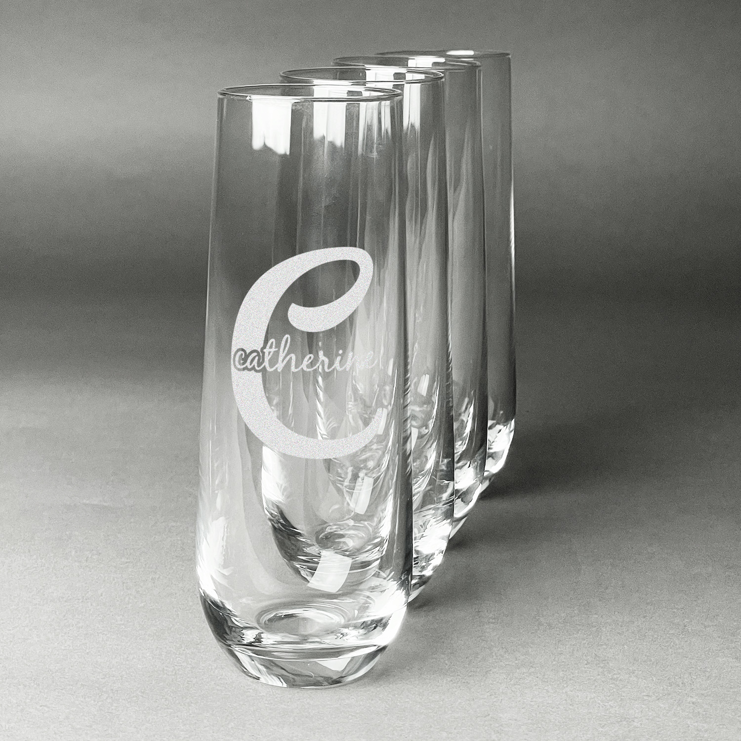 Design your custom stemless champagne flutes and we will then laser engrave your unique design on them for you. Whether they are a special gift for a bride and groom, for your New Years Eve party, or a bachelorette party you are sure to be able to add a custom personalized touch to make them perfect for the occasion.