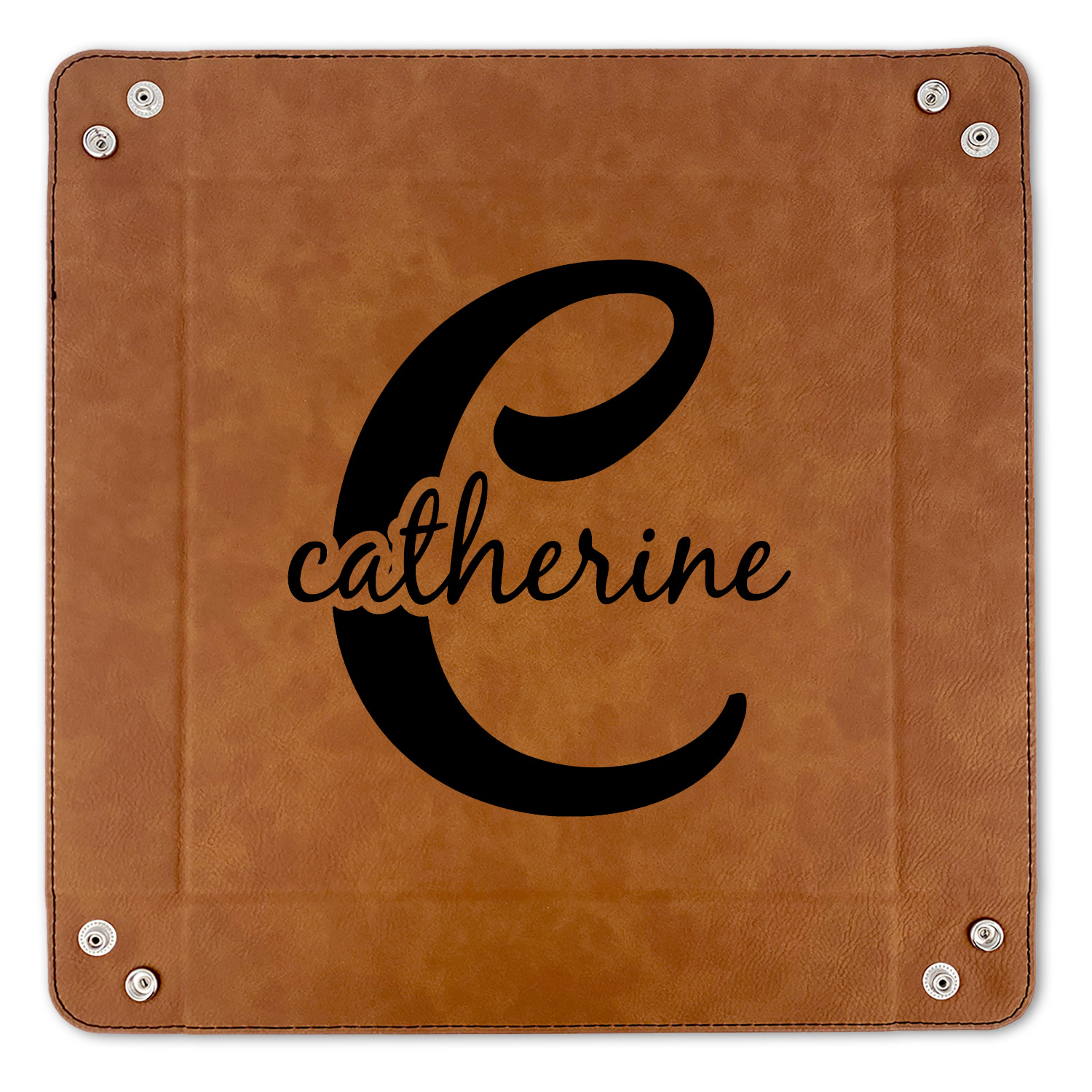 The leatherette wraps the hard board base and sides with flexible hinges to fold the sides up. The corners are secured using silver snaps. The 6in x 6 in tray measures approximately 9.5in x 9.5in when laid flat. The 9in x 9in tray measures approximately 13in x 13in when laid flat.
