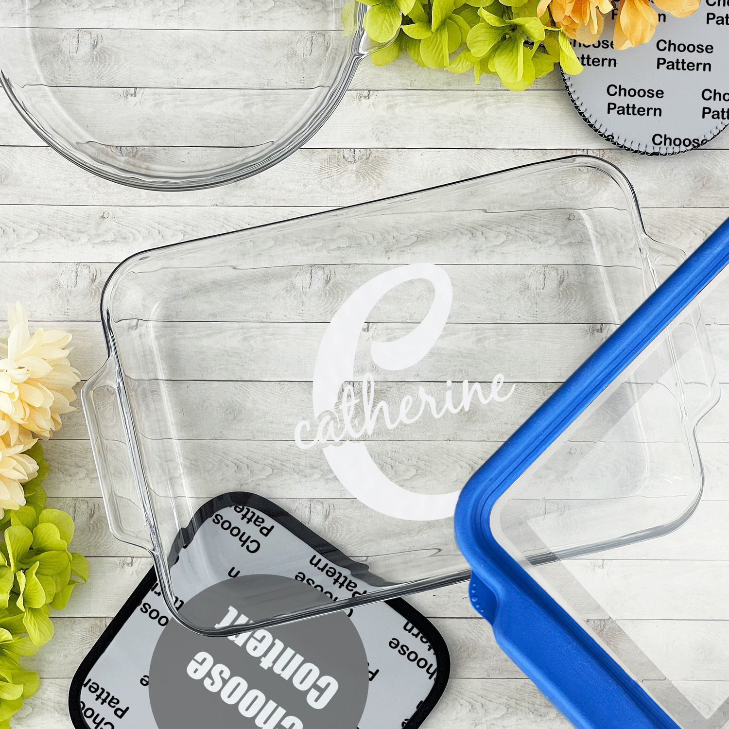 Tired of figuring out which dish is yours at a pot luck function? These personalized baking and cake dishes will make that a thing of the past by clearly showing your customization and no longer will someone else mistake your dish for their own.