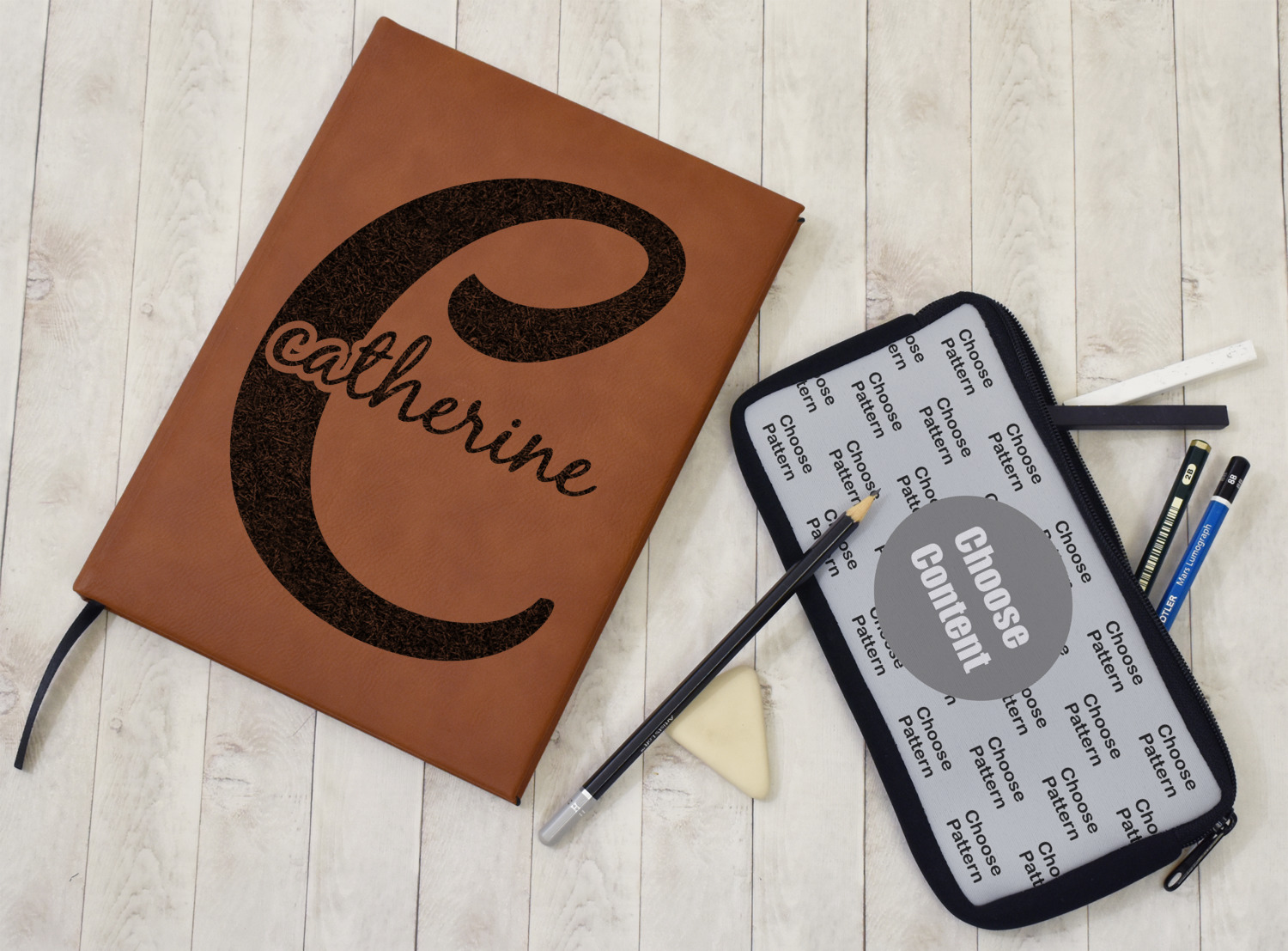 The faux leather covers are a rich cognac / rawhide color and can be customized with your design. From a simple name or monogram or a logo to a detailed mandala - the choice for customization & personalization is truly yours. Customize one of our designs or upload your own.