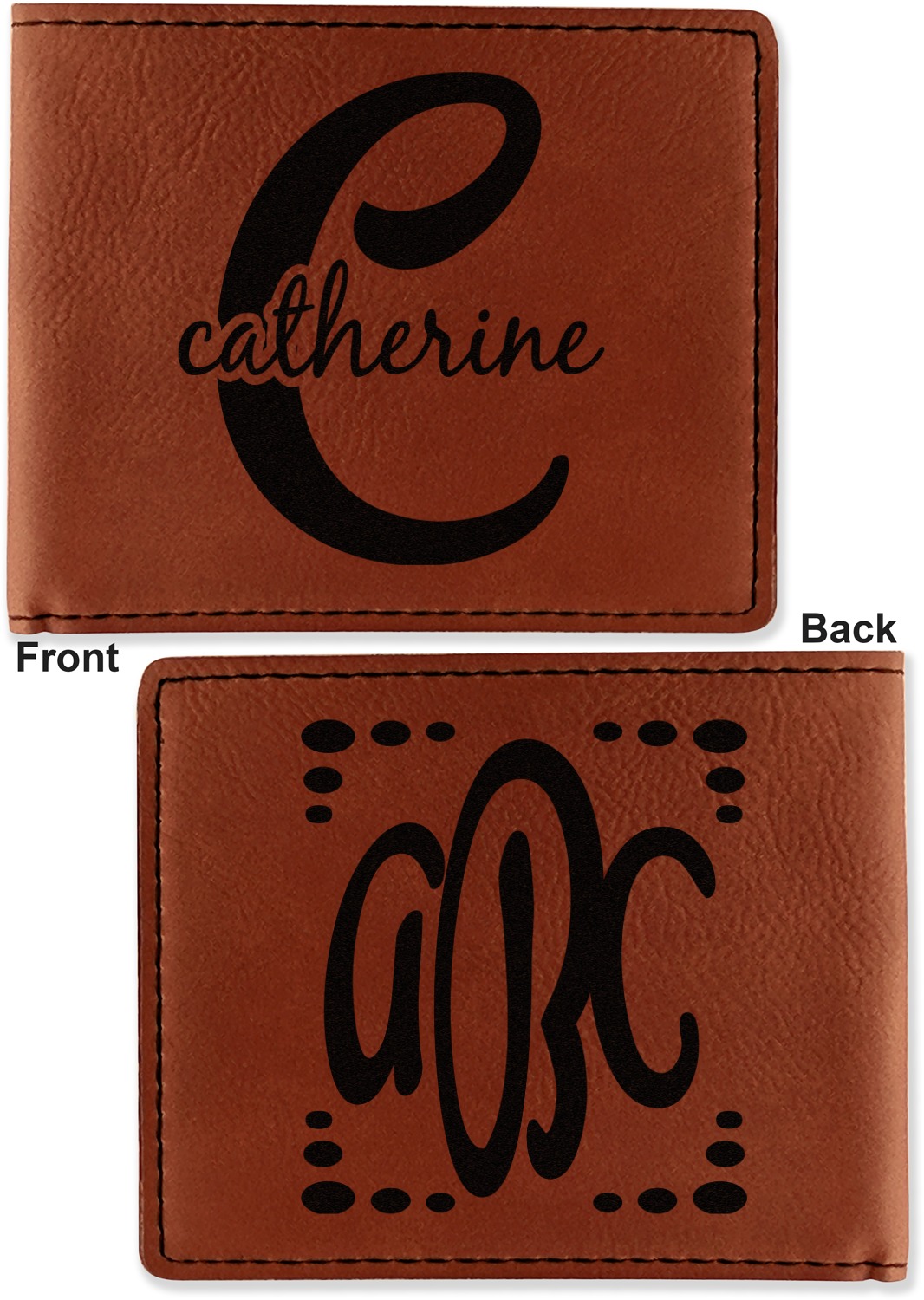 Your bifold wallet will be personalized by laser engraving, which will be a black color on the wallet. Choose a graphic, text, or monogram to personalize your wallet. There are thousands of choices in our design center.