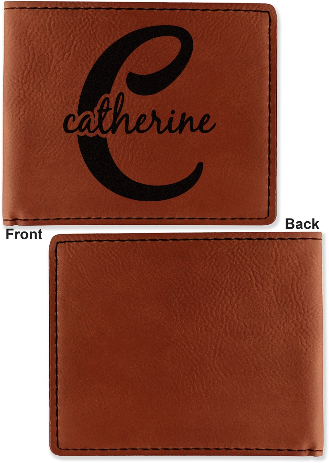 Your bifold wallet will be personalized by laser engraving, which will be a black color on the wallet. Choose a graphic, text, or monogram to personalize your wallet. There are thousands of choices in our design center.