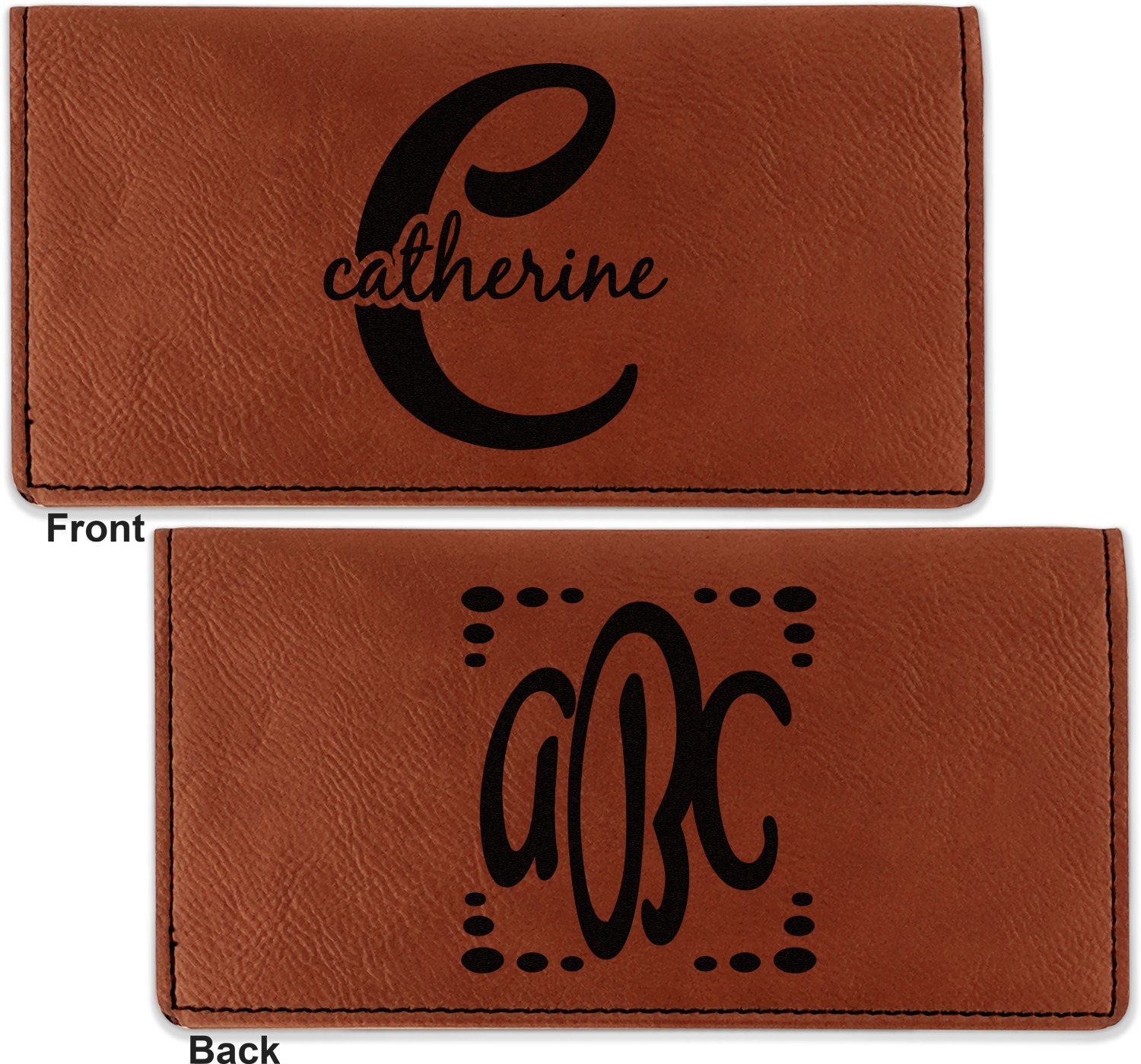 Go into our design center to start personalizing. Your checkbook cover will be laser engraved, making the graphic or text a black color. Choose a fun saying, monogram, or font to go on your checkbook cover. You have the opportunity to do it double or single sided.