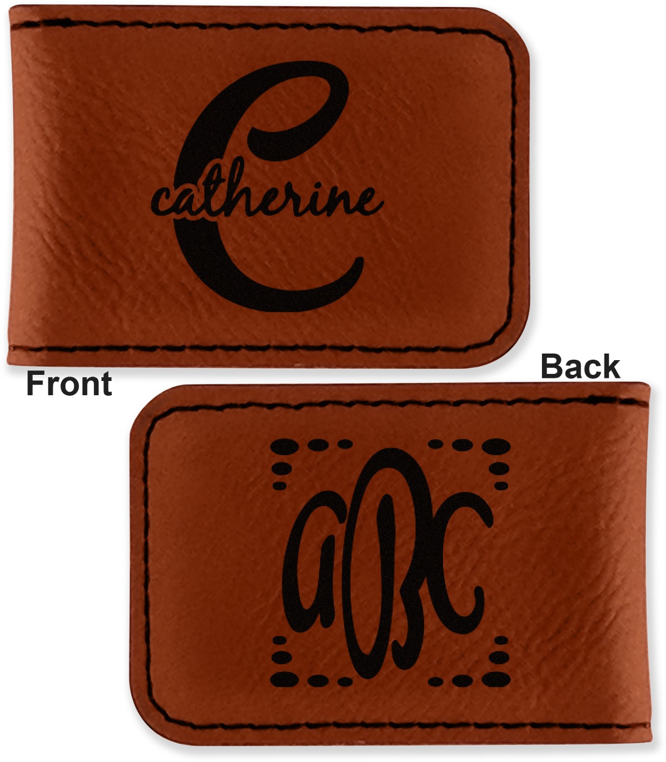 Your money clip will be laser engraved so that the design you choose will come out black. Find a fun graphic, monogram, or font to use to personalize your money clip either on just the front or the front and the back.