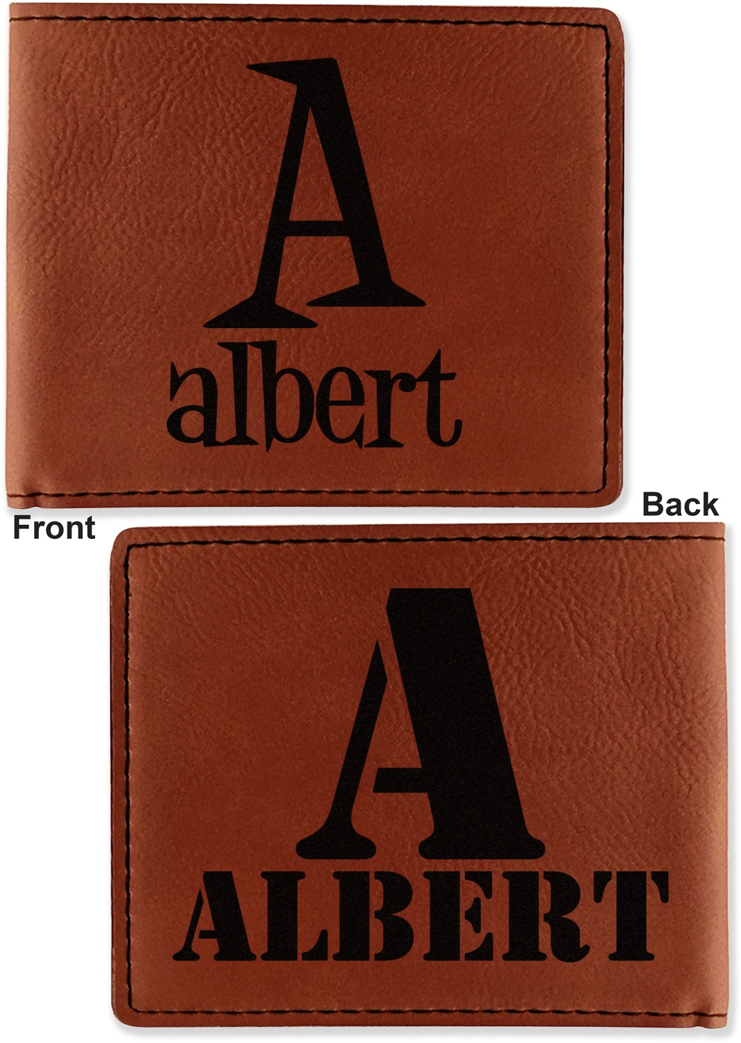 Your bifold wallet will be personalized by laser engraving, which will be a black color on the wallet. Choose a graphic, text, or monogram to personalize your wallet. There are thousands of choices in our design center.