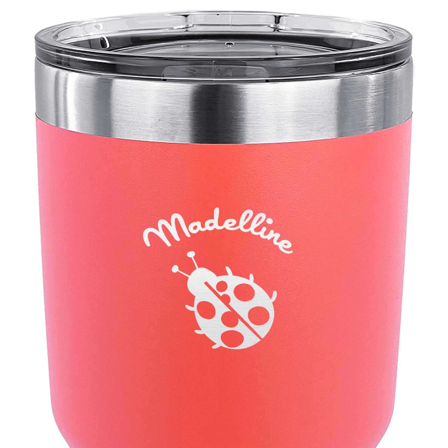 With the 5 colors - Black, Navy, Red, Pink and Coral, you are sure to find a cup to fit your personality. You can chose to engrave on the front or the front and back of the cup. Use our design studio to design your own cup and we laser engrave it for you.
