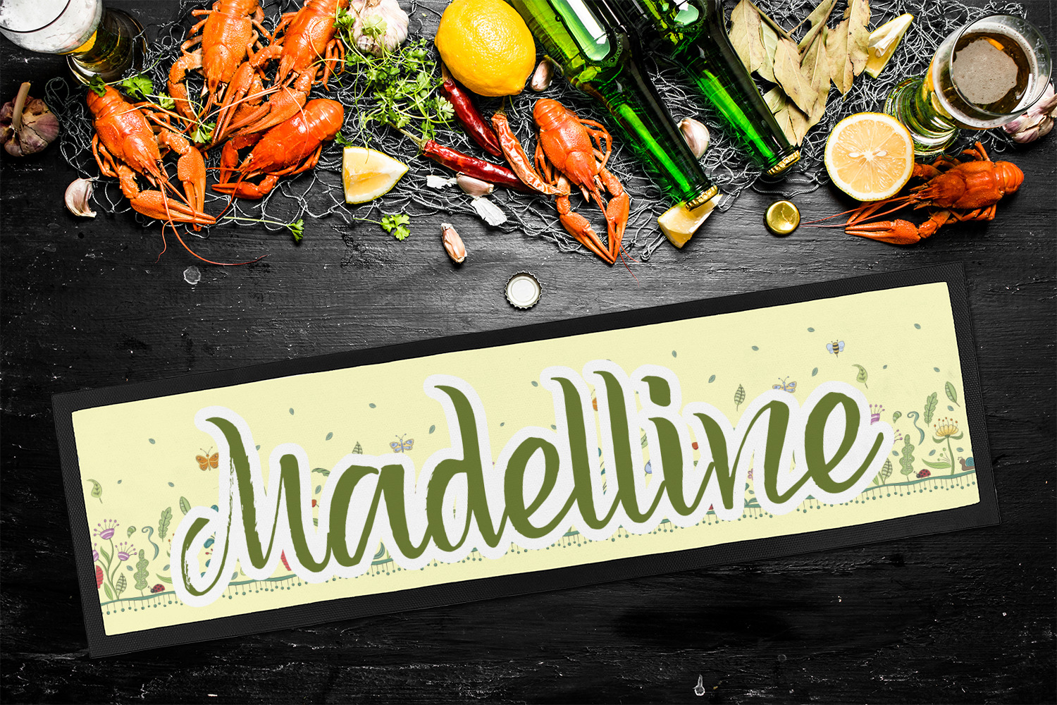 This beautiful, yet simple and elegant nature inspired design consists of growing flowers, leaves and the insects that are found around flowers such as ladybugs, bees, butterflies and snails. We have featured the design with a light yellow background, however, you can change it to any color you want. Changing the background color to a navy blue or black changes the look from sweet to elegant! Your personalization goes in a rectangular label across the top. The coordinating pattern and elements are all related to flowers and insects as well.