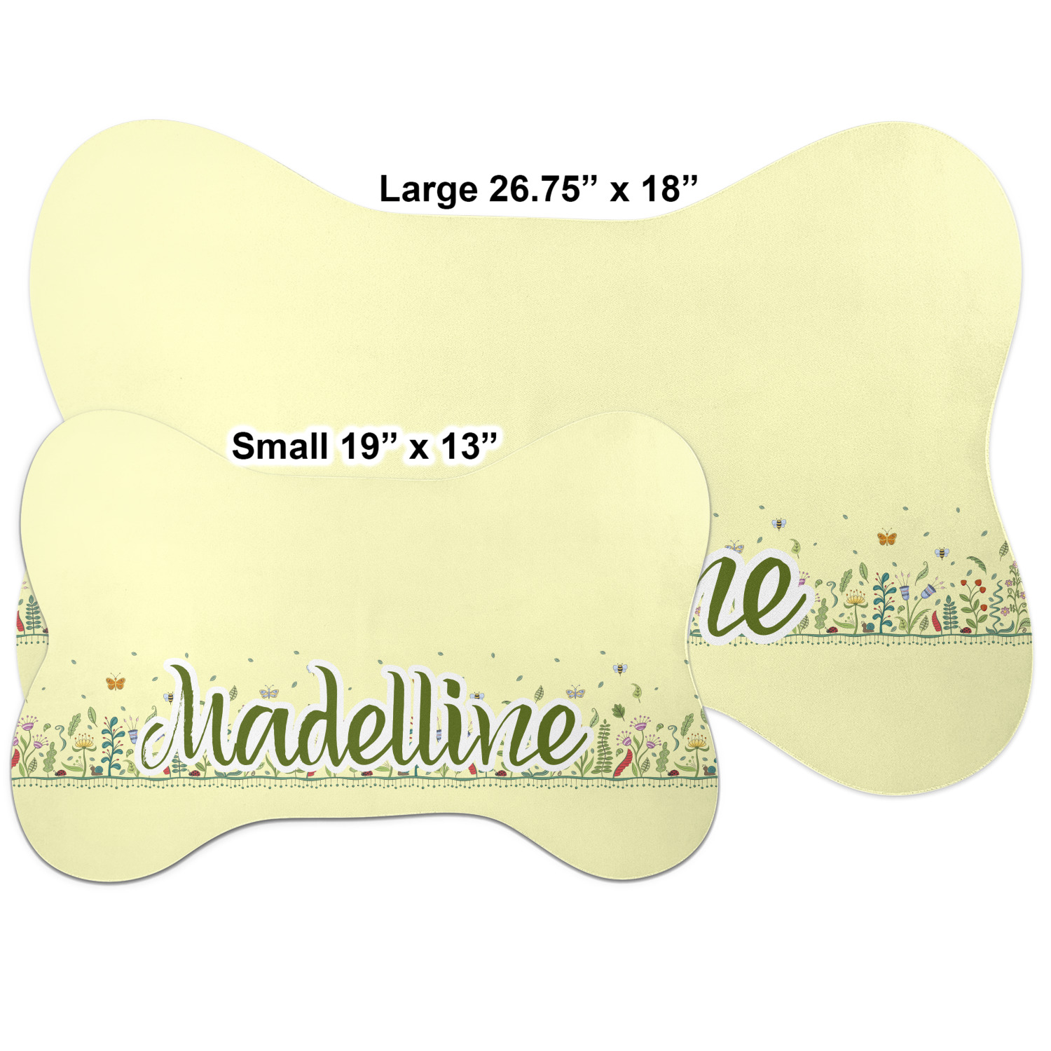 The bone-shaped dog bowl mat is the perfect way to add a touch of personality to your dog's eating area! Dogs make inevitable messes, especially when they eat and drink. Save the integrity of your floors and the time spent cleaning them by purchasing a personalized mat that catches spills!
