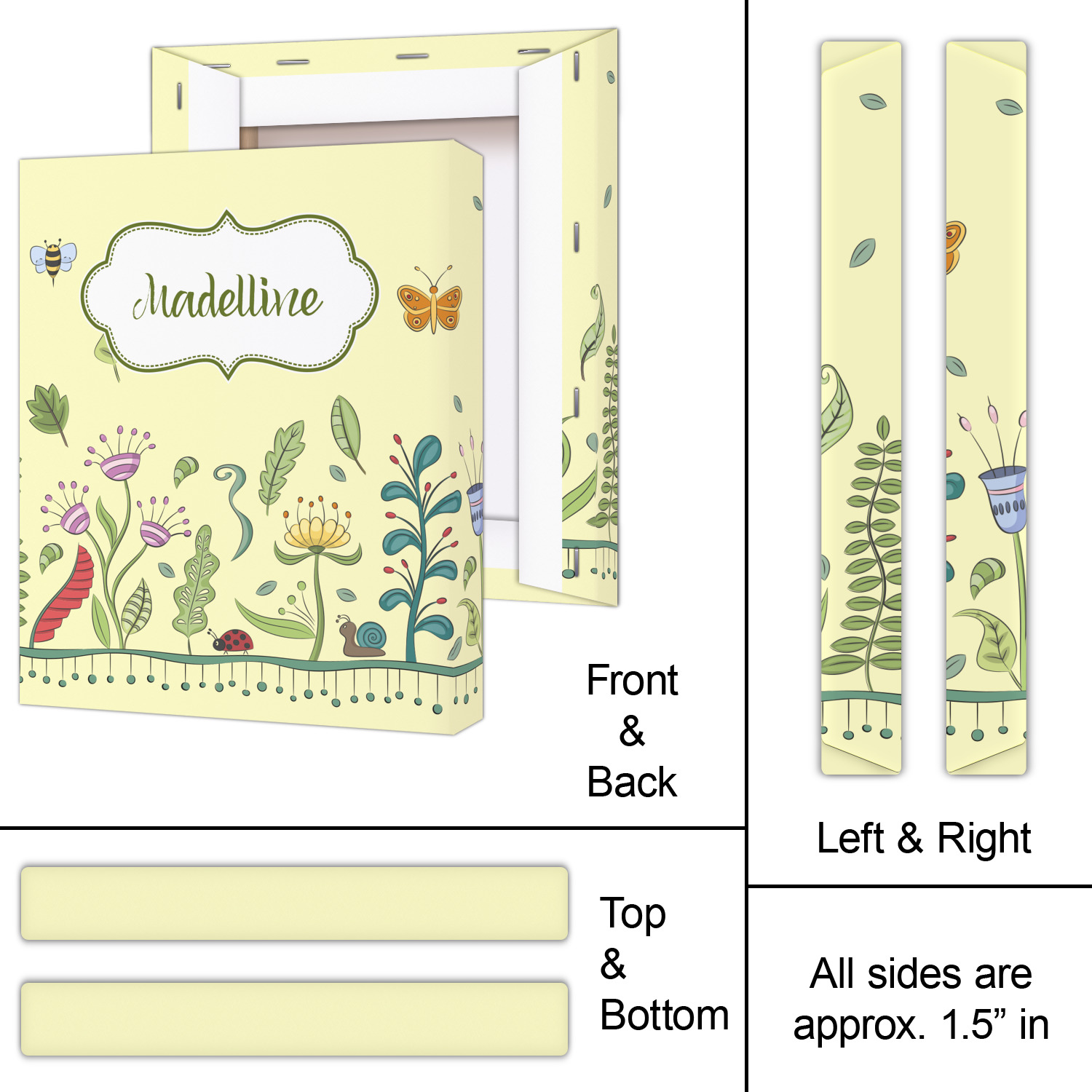 This beautiful, yet simple and elegant nature inspired design consists of growing flowers, leaves and the insects that are found around flowers such as ladybugs, bees, butterflies and snails. We have featured the design with a light yellow background, however, you can change it to any color you want. Changing the background color to a navy blue or black changes the look from sweet to elegant! Your personalization goes in a rectangular label across the top. The coordinating pattern and elements are all related to flowers and insects as well.