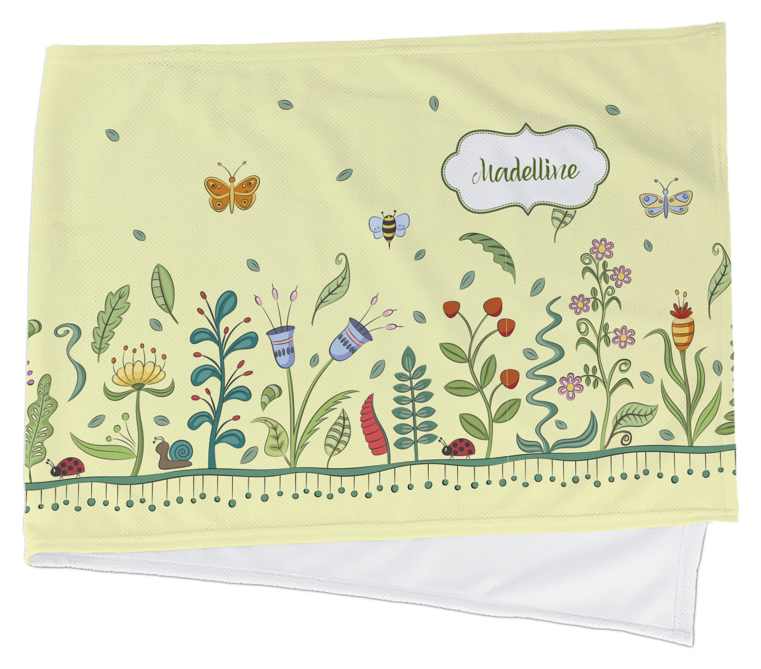 This beautiful, yet simple and elegant nature inspired design consists of growing flowers, leaves and the insects that are found around flowers such as ladybugs, bees, butterflies and snails. We have featured the design with a light yellow background, however, you can change it to any color you want. Changing the background color to a navy blue or black changes the look from sweet to elegant! Your personalization goes in a rectangular label across the top. The coordinating pattern and elements are all related to flowers and insects as well.
