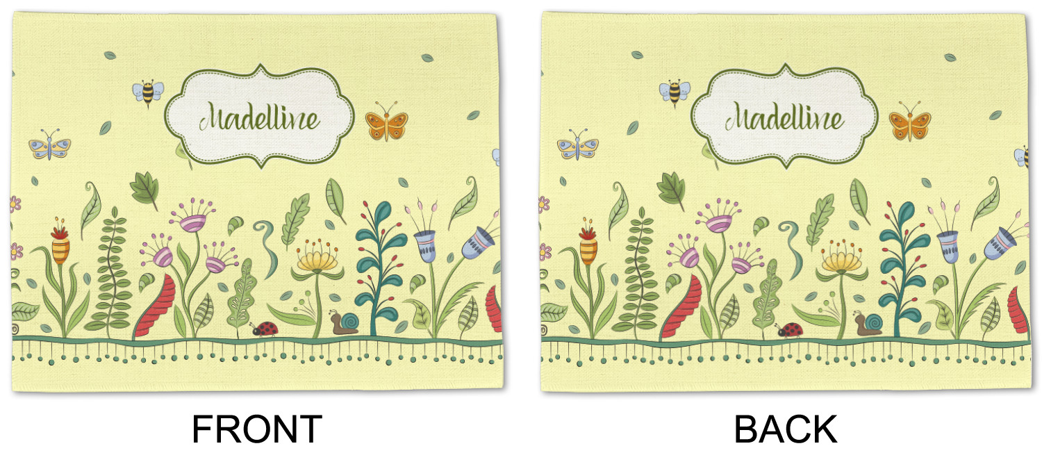 This beautiful, yet simple and elegant nature inspired design consists of growing flowers, leaves and the insects that are found around flowers such as ladybugs, bees, butterflies and snails. We have featured the design with a light yellow background, however, you can change it to any color you want. Changing the background color to a navy blue or black changes the look from sweet to elegant! Your personalization goes in a rectangular label across the top. The coordinating pattern and elements are all related to flowers and insects as well.