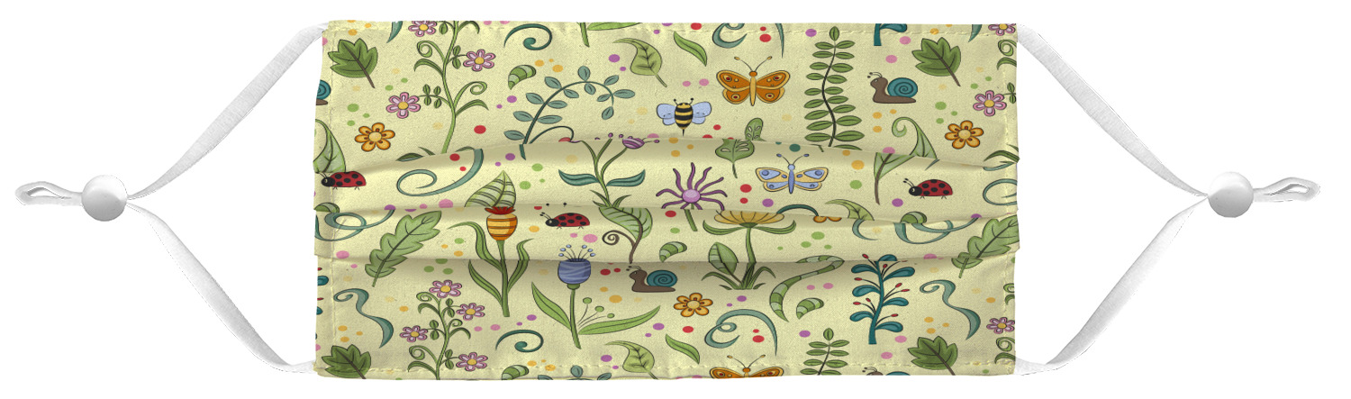 These fun face masks are 7" wide and 3.5" high. They feature pleats, adjustable ear loops, and are made with two layers of fabric. The top layer where your design is printed is a breathable polyester sheeting, while the inside layer is a soft microfiber polyester