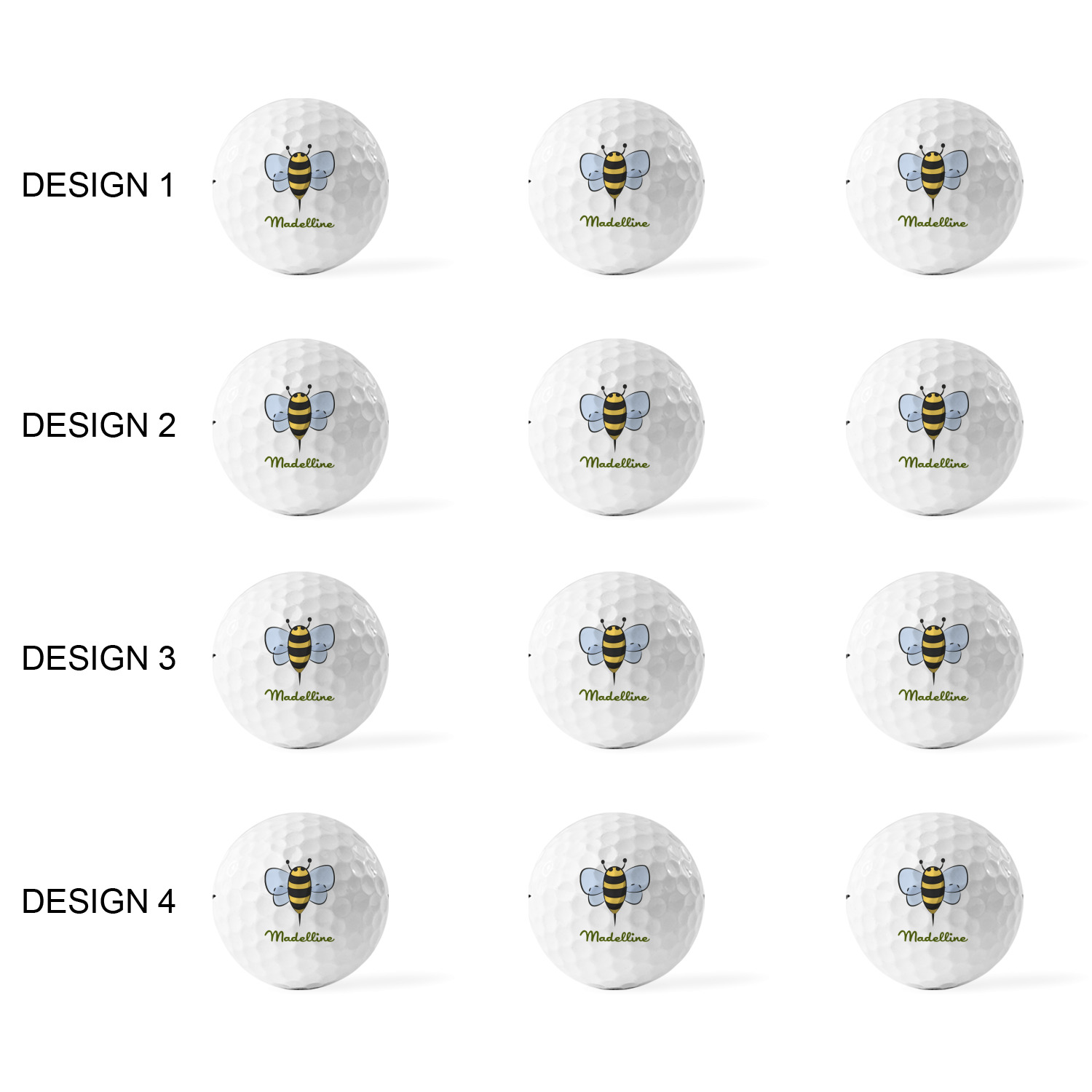 Printed in a 7/8" circle on each ball, you can customize these with our design studio or use your own designs. For a set of 3 you can design each one individually, for a set of 12 you will be able to use 4 unique designs and will receive 3 balls with each design.