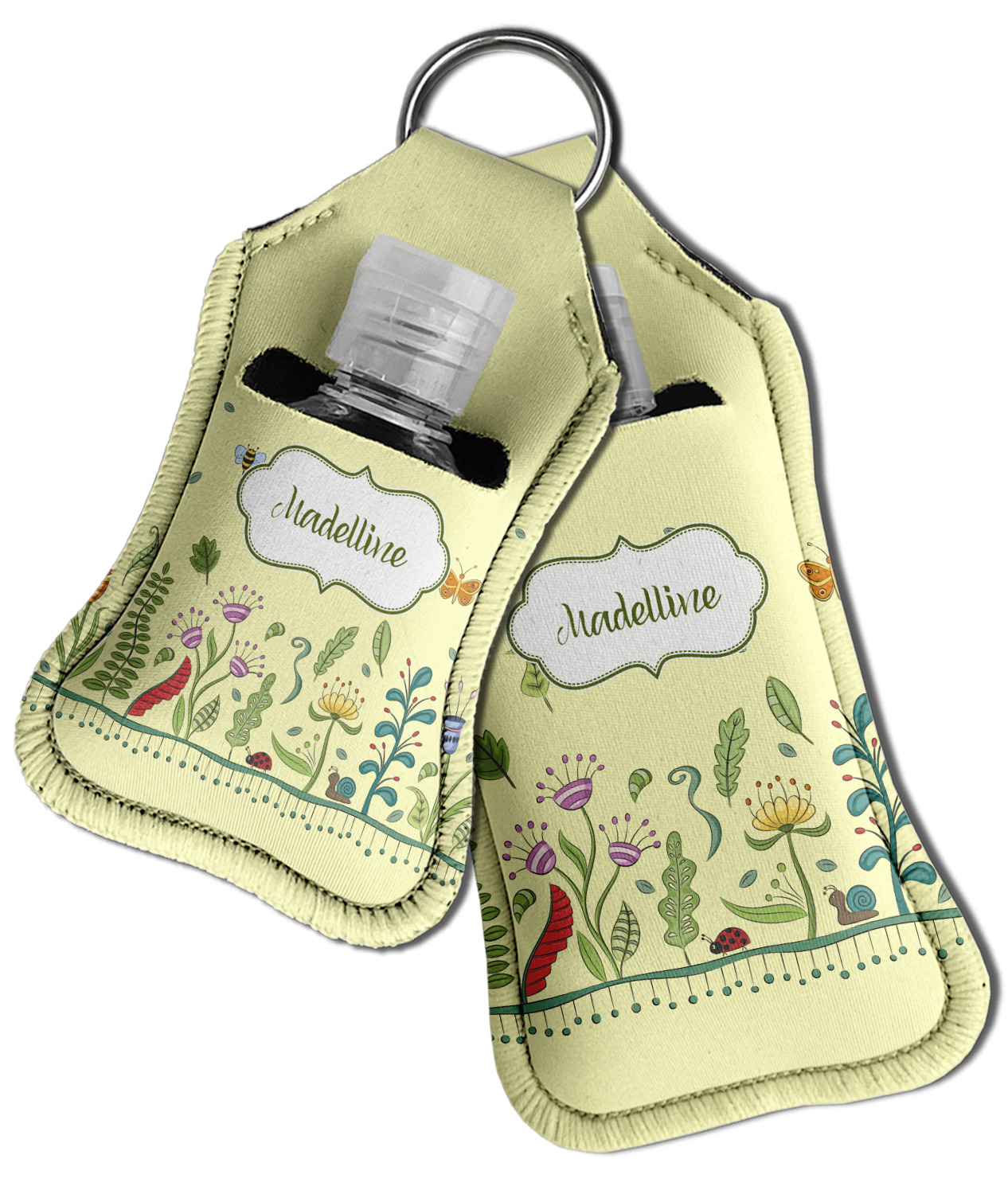 Each hand sanitizer holder comes with its own empty travel-sized, refillable hand sanitizer sure to fit snug in your customized sanitizer case! Our hand sanitizer cases are a durable, yet soft neoprene material sure to last any daily activities or travel agenda. Customize and personalize a hand sanitizer bottle holder with one of our two sizes - small (4.25" x 2.25") or large (5.5" x 2.5"). Each travel sanitizer holder comes with a keyring for attachment on bags, keys, or more!