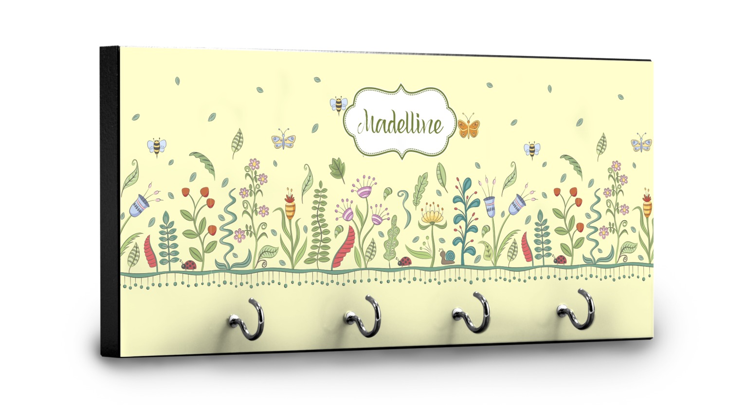 This 11" x 5" key hanger is made of sturdy wood and has four metal hooks lining the bottom. This is the perfect size for a family with several drivers. Not only can you hang keys on it though, but pet leashes and other small items. The board is black on the sides and back and is printed with the design of your choice on the front.