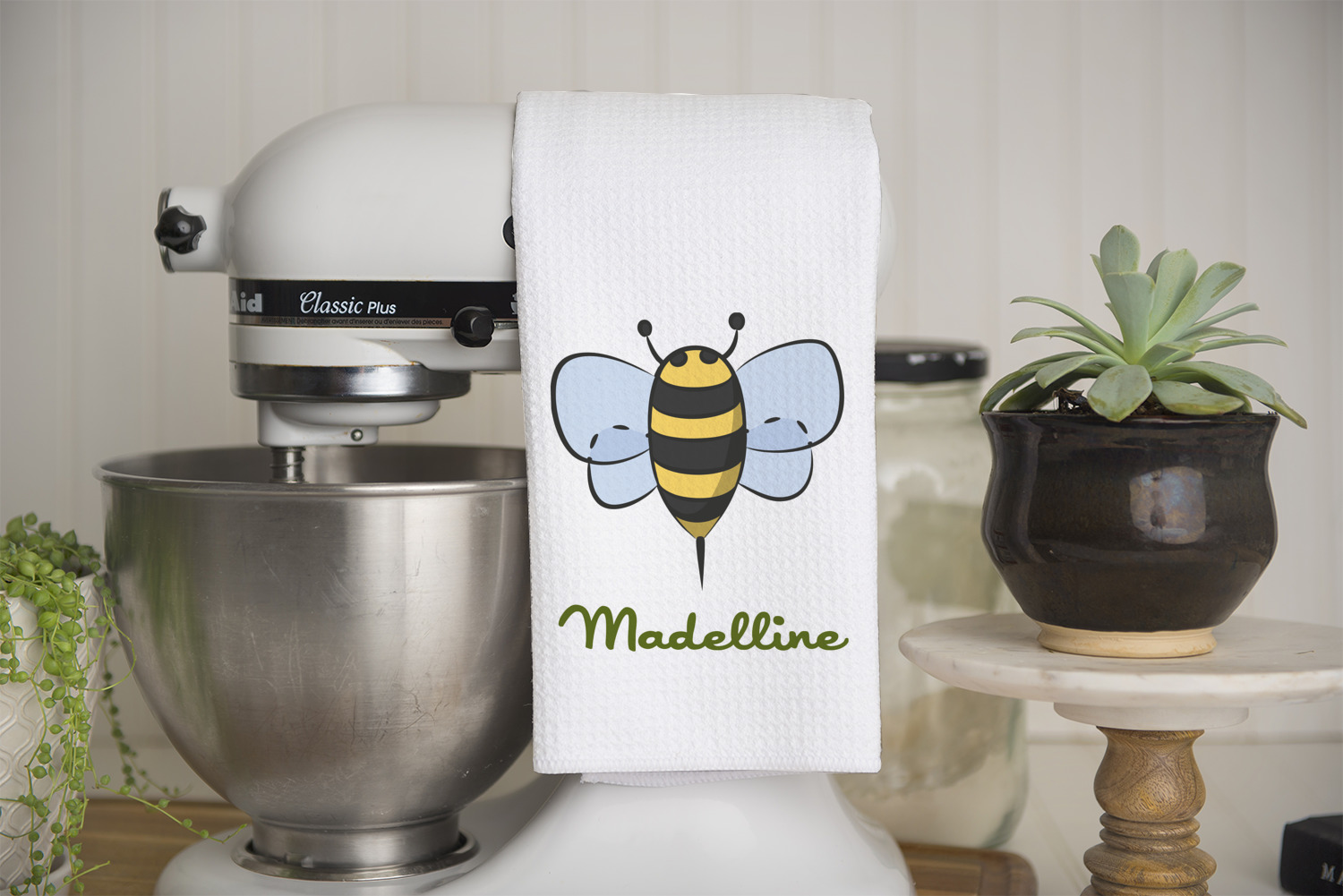 Each waffle weave kitchen towel is approximately 16 x 24 inches with your design printed on one side and the back is white.