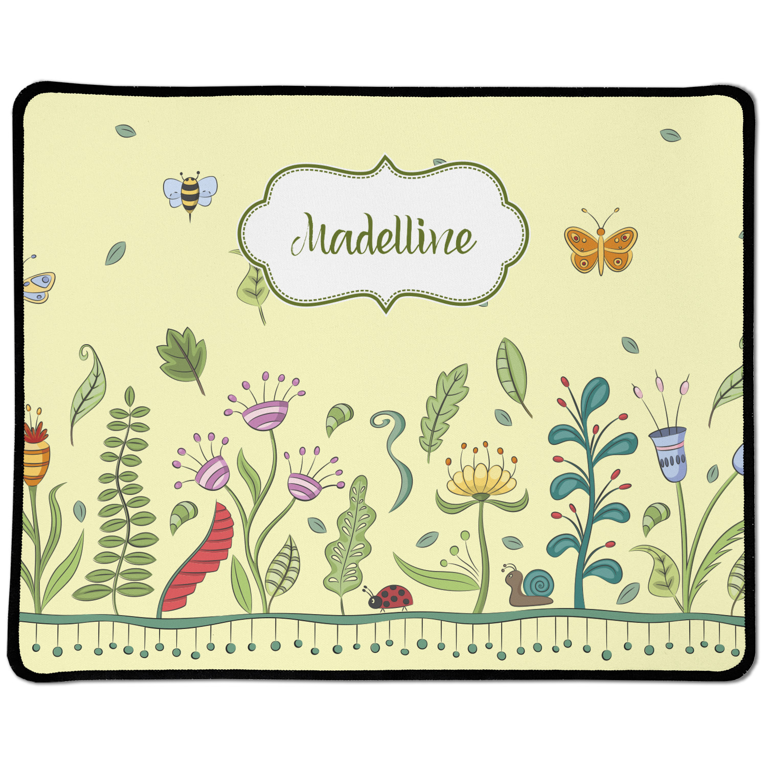 This beautiful, yet simple and elegant nature inspired design consists of growing flowers, leaves and the insects that are found around flowers such as ladybugs, bees, butterflies and snails. We have featured the design with a light yellow background, however, you can change it to any color you want. Changing the background color to a navy blue or black changes the look from sweet to elegant! Your personalization goes in a rectangular label across the top. The coordinating pattern and elements are all related to flowers and insects as well.