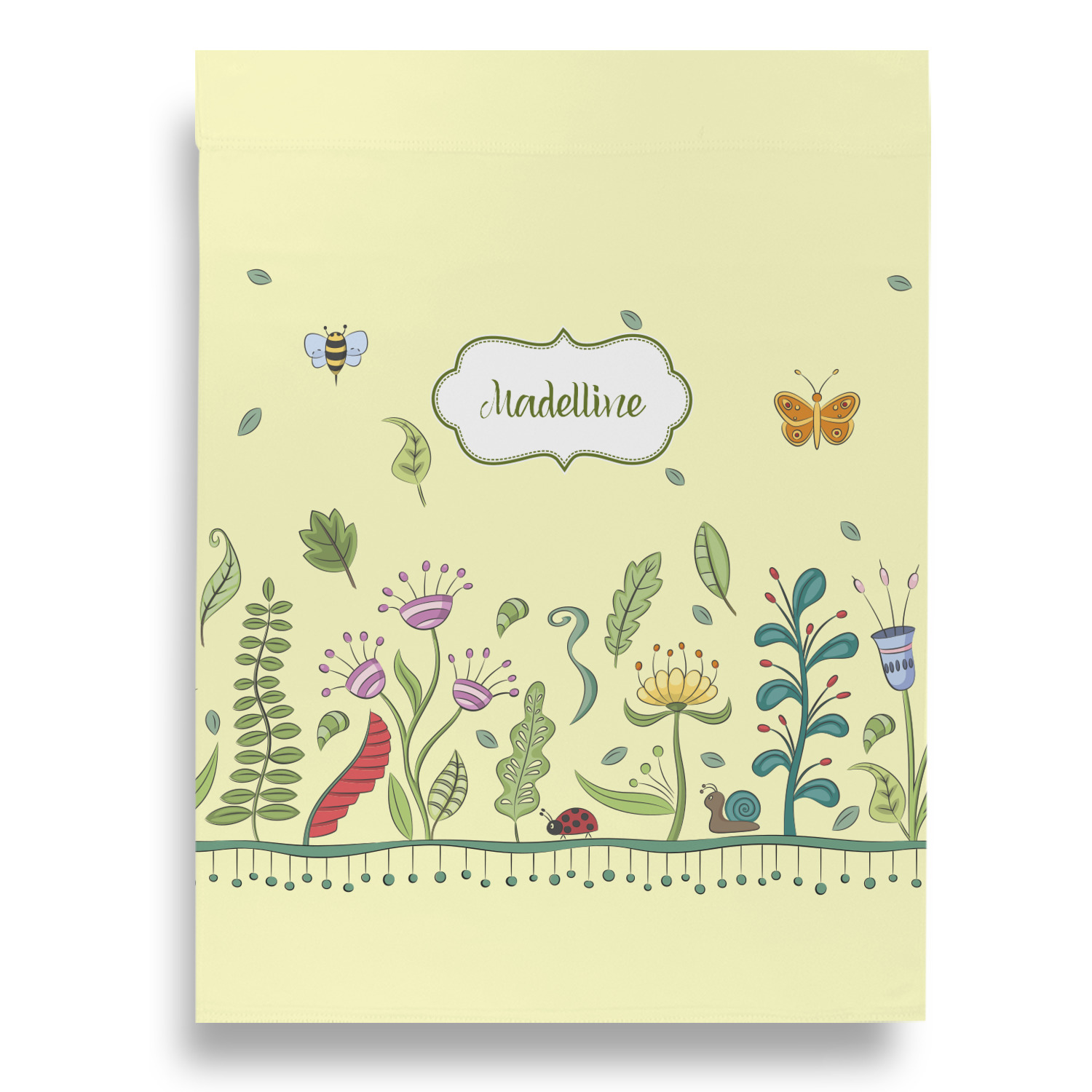 This beautiful, yet simple and elegant nature inspired design consists of growing flowers, leaves and the insects that are found around flowers such as ladybugs, bees, butterflies and snails. We have featured the design with a light yellow background, however, you can change it to any color you want. Changing the background color to a navy blue or black changes the look from sweet to elegant! Your personalization goes in a rectangular label across the top. The coordinating pattern and elements are all related to flowers and insects as well.