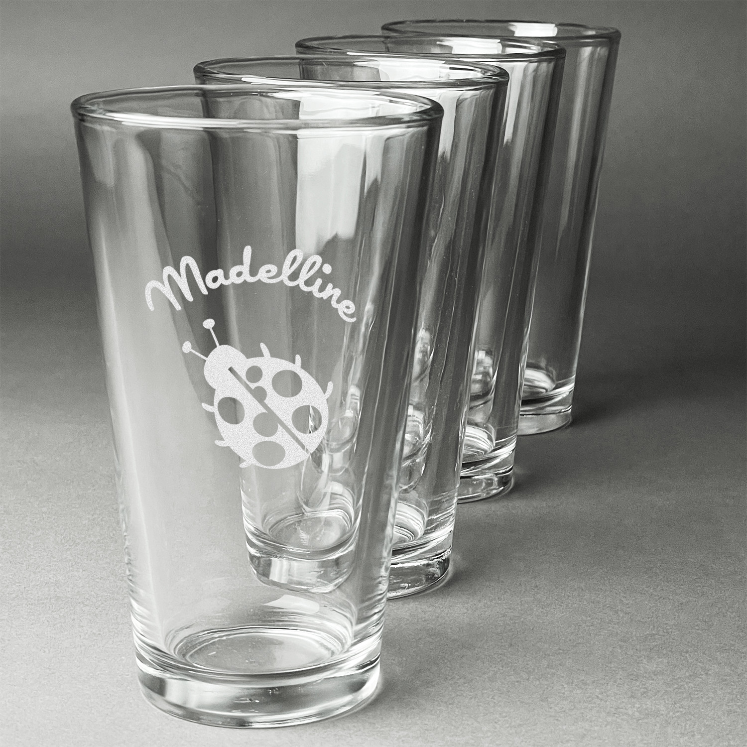 Available in a single glass or a set of 4 - each glass will be custom engraved with your design. Each glass holds 16 oz and measure 5.75"H x 3.5"W.