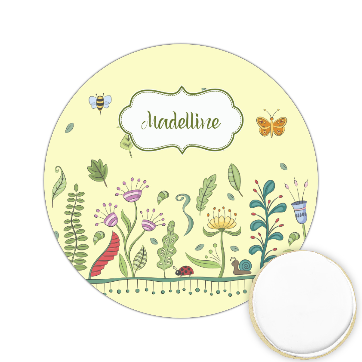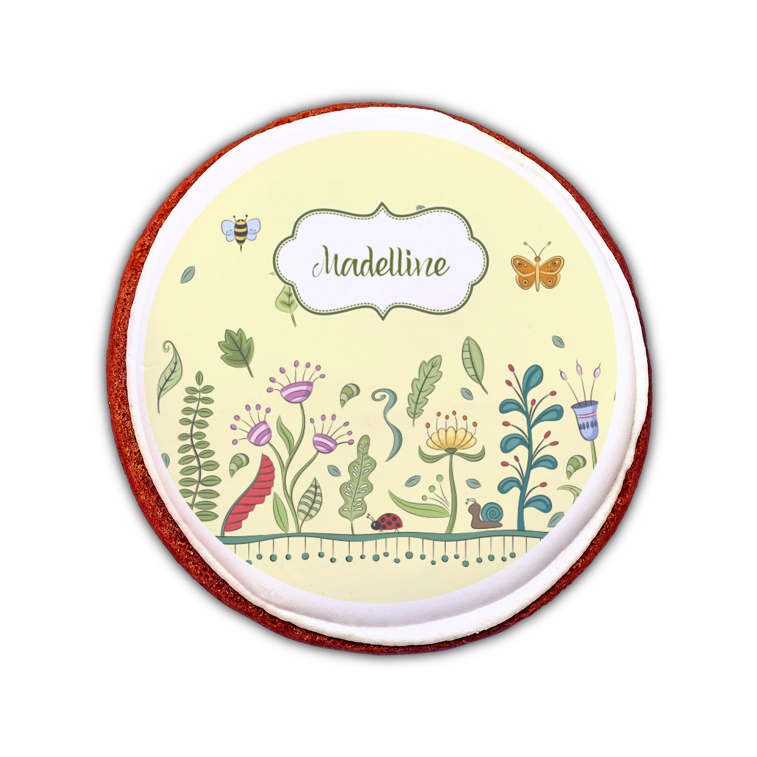 This beautiful, yet simple and elegant nature inspired design consists of growing flowers, leaves and the insects that are found around flowers such as ladybugs, bees, butterflies and snails. We have featured the design with a light yellow background, however, you can change it to any color you want. Changing the background color to a navy blue or black changes the look from sweet to elegant! Your personalization goes in a rectangular label across the top. The coordinating pattern and elements are all related to flowers and insects as well.