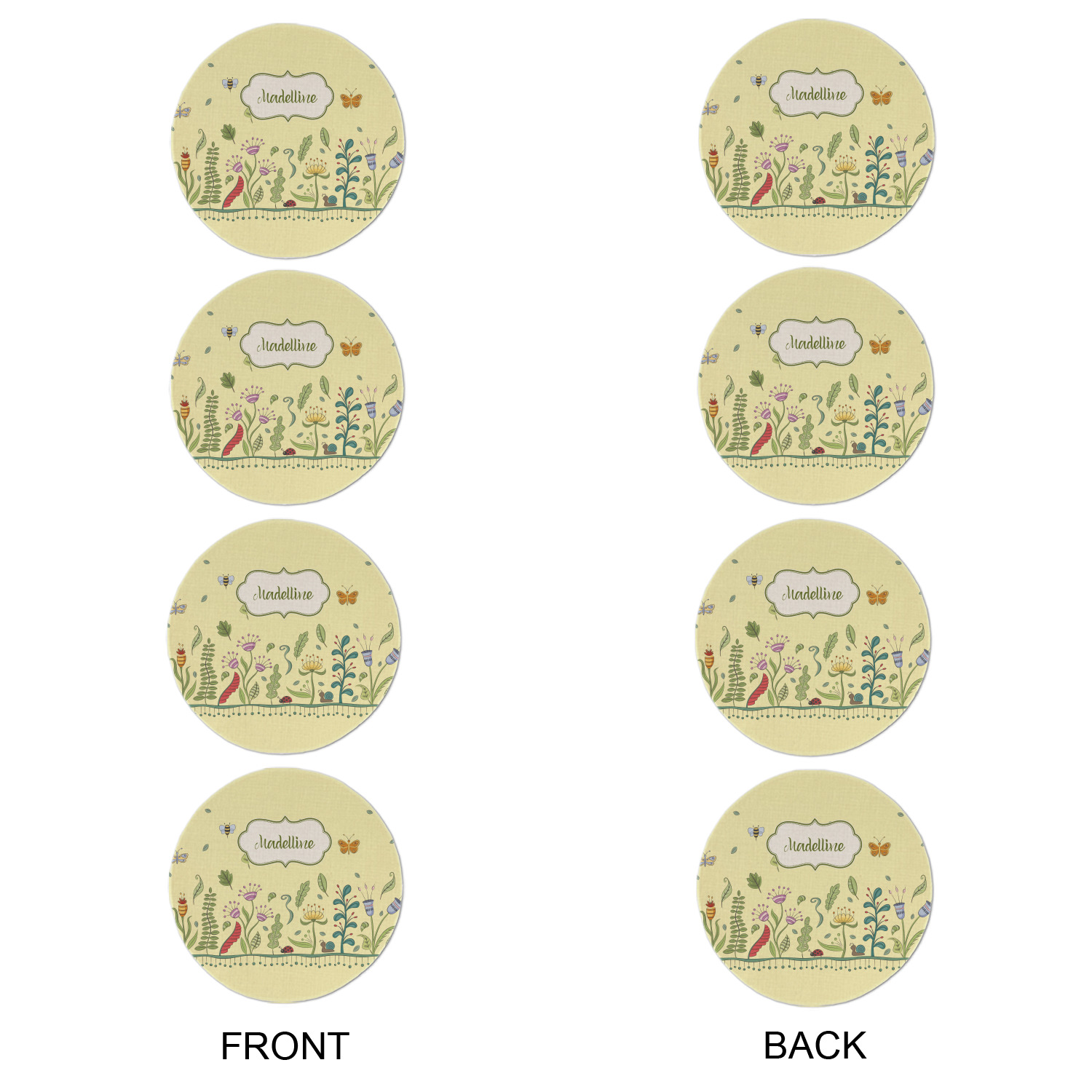 This beautiful, yet simple and elegant nature inspired design consists of growing flowers, leaves and the insects that are found around flowers such as ladybugs, bees, butterflies and snails. We have featured the design with a light yellow background, however, you can change it to any color you want. Changing the background color to a navy blue or black changes the look from sweet to elegant! Your personalization goes in a rectangular label across the top. The coordinating pattern and elements are all related to flowers and insects as well.