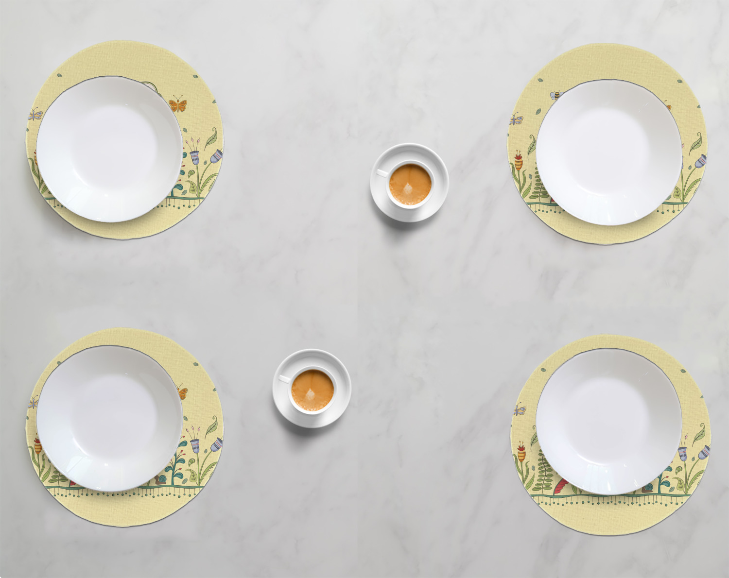 This beautiful, yet simple and elegant nature inspired design consists of growing flowers, leaves and the insects that are found around flowers such as ladybugs, bees, butterflies and snails. We have featured the design with a light yellow background, however, you can change it to any color you want. Changing the background color to a navy blue or black changes the look from sweet to elegant! Your personalization goes in a rectangular label across the top. The coordinating pattern and elements are all related to flowers and insects as well.