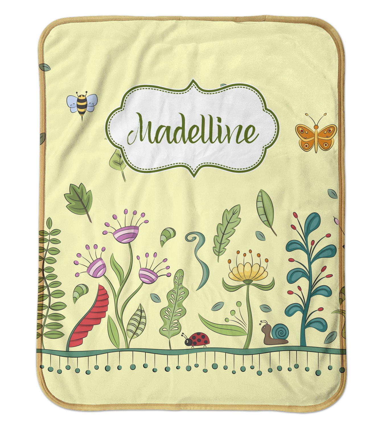 These toddler blankets are made of two different materials; the front side is made of a velvety, minky-like material that displays your customization and is perfect for a baby's delicate skin. The underside is crafted from a fluffy, sherpa fleece, and bears a classy, tan color. The dual texture gives your baby added comfort, as both sides are incredibly soft and plush. The corners of this blanket are rounded, and the ribbing of the blanket is a tan color, which complements the sandy color of the sherpa fleece. At approximately 30 by 40 inches, this custom baby blanket is the perfect size for babies and toddlers.