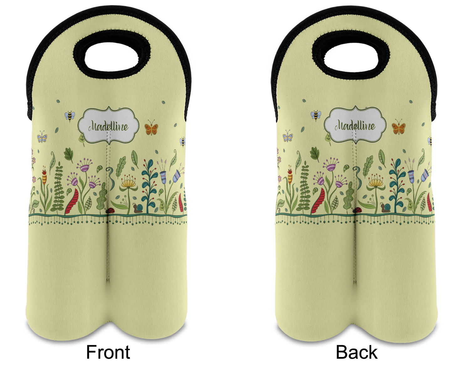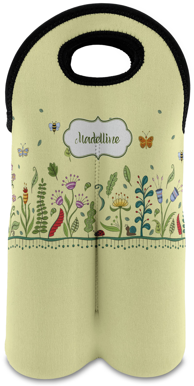 These tote bags are insulated to keep the bottles cold and have a stitched separation down the middle and double handles to keep the two bottles safe and secure during travels.