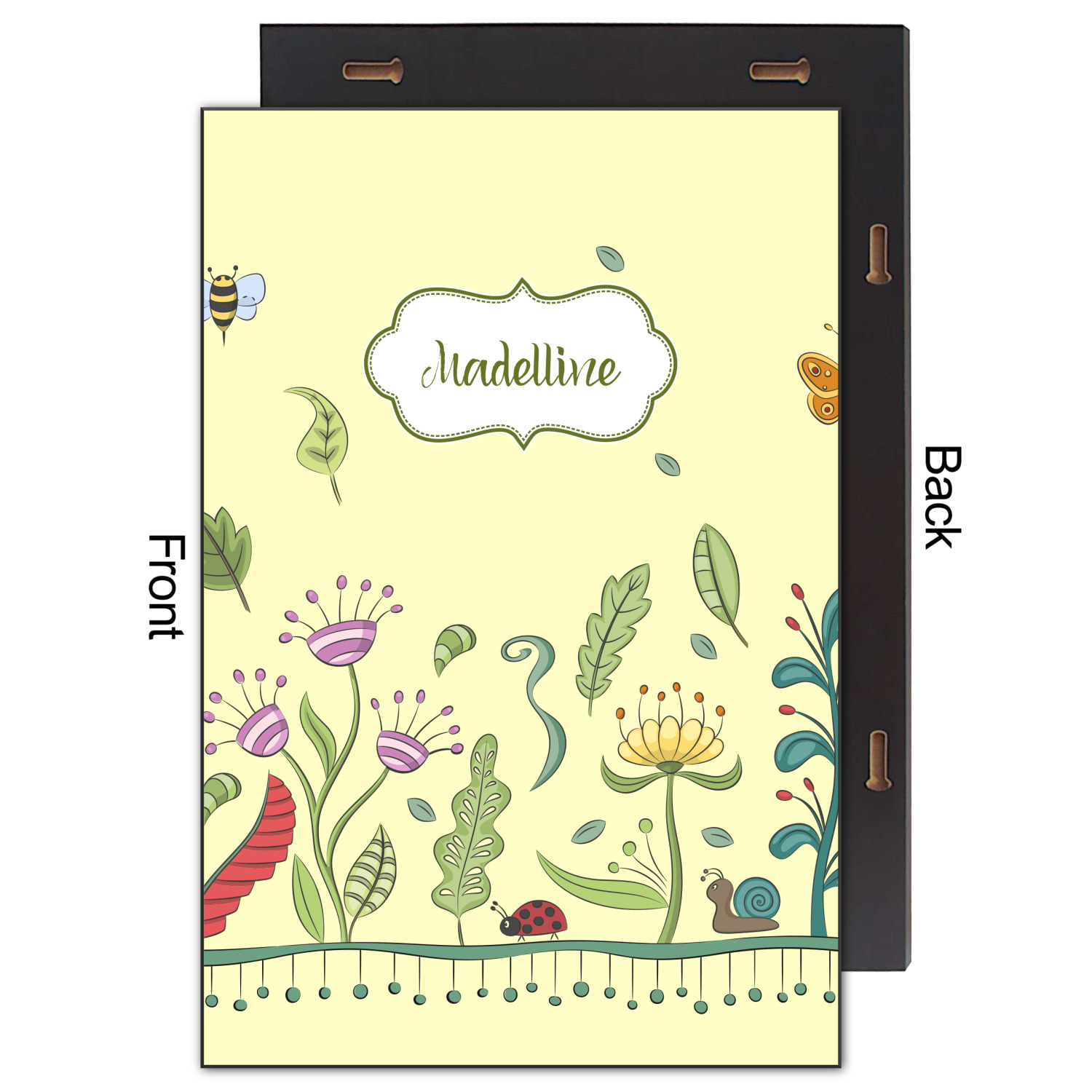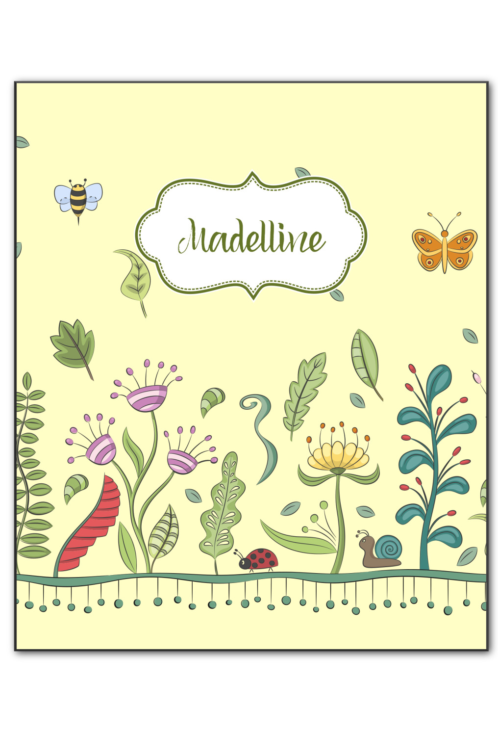 This beautiful, yet simple and elegant nature inspired design consists of growing flowers, leaves and the insects that are found around flowers such as ladybugs, bees, butterflies and snails. We have featured the design with a light yellow background, however, you can change it to any color you want. Changing the background color to a navy blue or black changes the look from sweet to elegant! Your personalization goes in a rectangular label across the top. The coordinating pattern and elements are all related to flowers and insects as well.