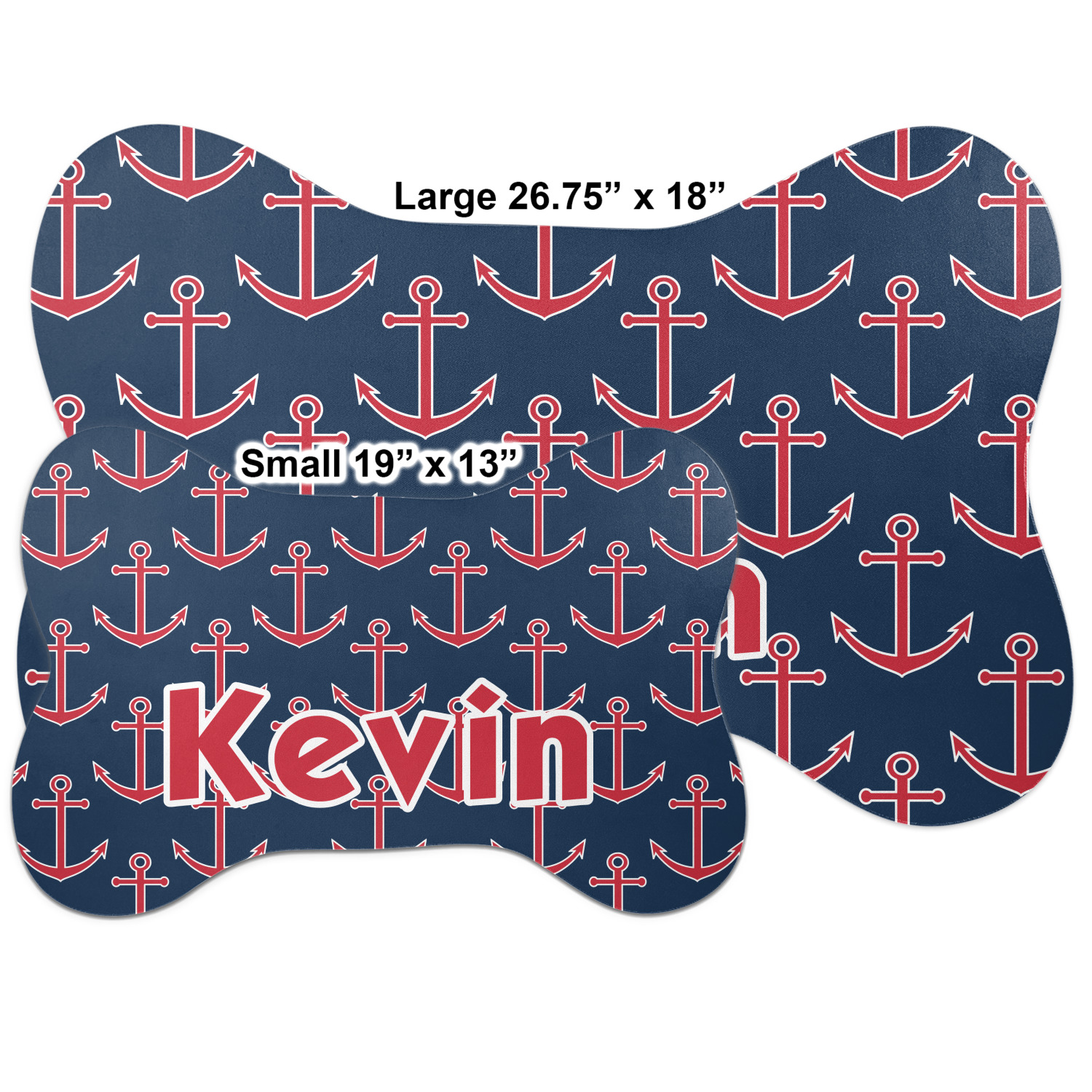 The bone-shaped dog bowl mat is the perfect way to add a touch of personality to your dog's eating area! Dogs make inevitable messes, especially when they eat and drink. Save the integrity of your floors and the time spent cleaning them by purchasing a personalized mat that catches spills!