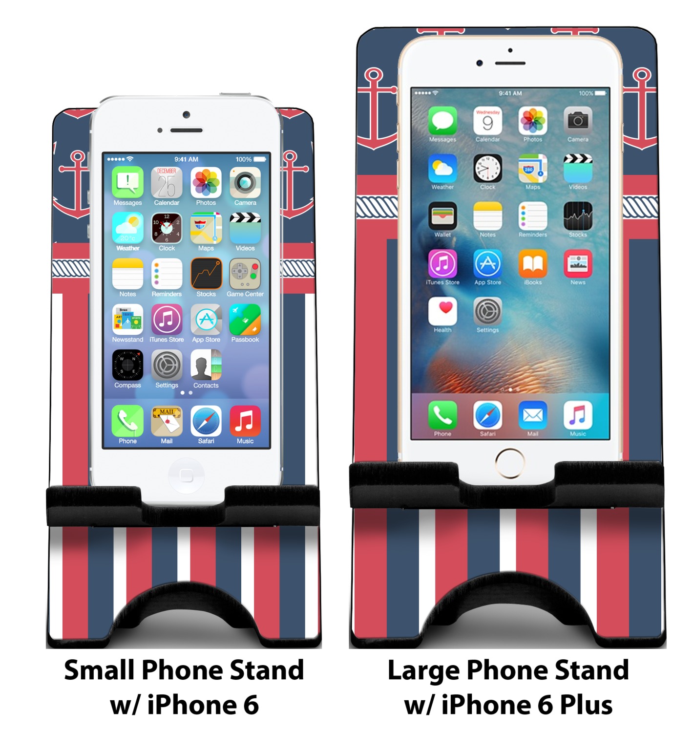To meet your needs, we offer four variations of this IPhone stand. The backboard of the first version is shaped as a plain, yet sleek rectangle, and is available in two sizes. Our smaller size is approximately 4 by 3.25 by 7 inches, while the larger model is 4 by 3.77 by 8.5 inches. Alongside this model, we also provide you with a more decorative option. The upper part of our second version features a curved edge, for a classy, suave appearance. This phone holder is also sold in two sizes: a smaller version, which is 4 by 3.25 by 7 inches, and our larger model, which is 4 by 3.77 by 8.5 inches. Both models will support large phones, but the larger model is better if you wish to proudly display your personalized design.