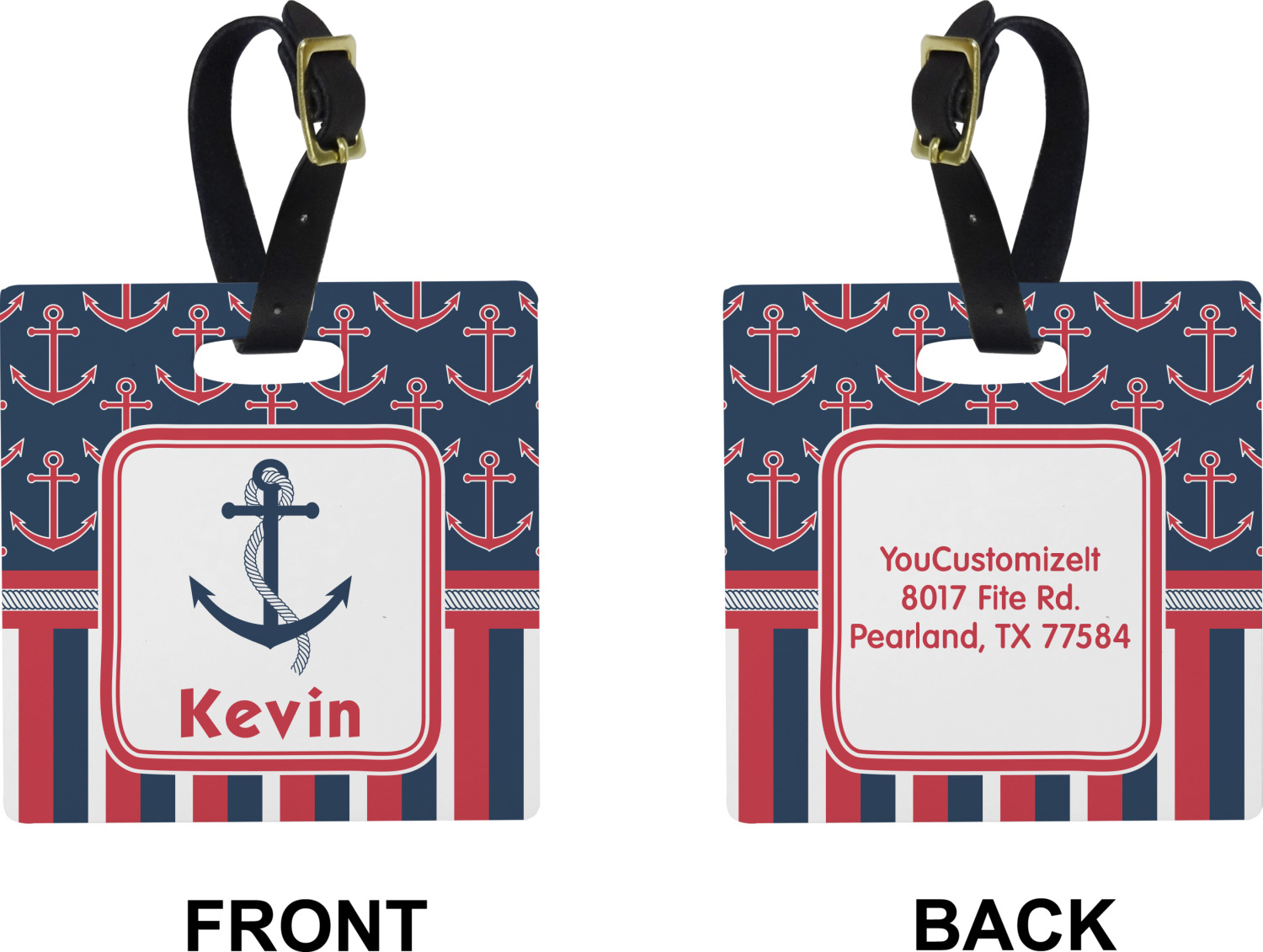 These cute luggage tags are made of a fiber-reinforced, UV-resistant plastic, making them waterproof and durable enough for both everyday use and the rugged adventures of any traveler! A leather strap with holes and a buckle is included with your purchase and can be used to attach your custom luggage tag to any suitcase, backpack, or duffel bag. You can design these travel tags as you wish; your customization will be displayed across the front, while the back will show as little or as much personal information as you want.
