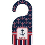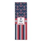 This nautical design features anchor pattern on top and stripes on the bottom. We chose to use the classic navy, red and white colors for our design. We chose the ribbon with rope, along with a squarish frame that contains a graphic and text. We use the anchor with rope for our graphic and a name for our text / personalization.