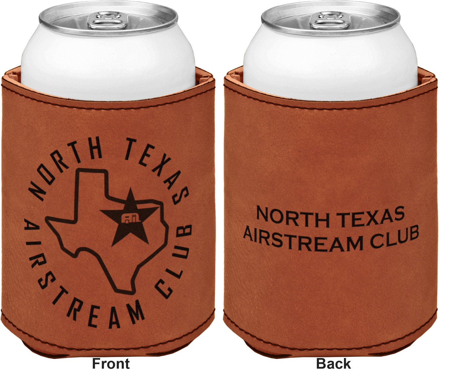 This can sleeve is made from a cognac-brown leatherette and stitched with a sturdy, black thread. A slim padding lines the inside of your can sleeve to allow for a better fit once your drink is inserted. The sleeve itself measures at 4 by 4.5 inches, allowing this custom can sleeve to accommodate most canned drinks. Your personalized design can be engraved on the front and back, or solely the front. When laser-engraved, your design appears as a black coloration which contrasts the leatherette nicely.