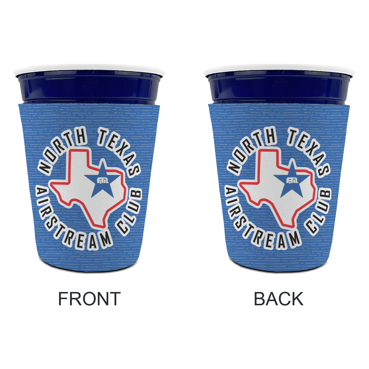 Made from neoprene with a polyester outer fabric and sewn seams, these premium quality party cup sleeves are very durable and will hold up to heavy use. They are available in 2 styles - with a bottom or just a sleeve to go around the outside of the tapered cup. The sleeve covers are about 4" tall and cover about 90% of the classic 16 oz. Solo cup.