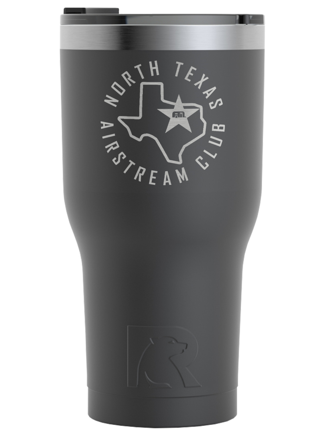 These RTIC cups are crafted from an 18/8 stainless steel, making them durable and heavy-duty. They are also double-walled and vacuum-sealed, making them the perfect insulated coffee tumbler! At 4 by 4.5 by 8 inches, these tumblers can hold up to 30 ounces of liquid, and they will keep your beverage hot or cold for hours! Also, the tapered shape and slender bottom makes these custom tumbler cups easy to grip, and can fit in most car cup holders! The tumbler is accompanied by a clear lid with a tab that can be easily flipped back when you need to drink. The RTIC logo appears on the neck and lid of the customizable tumblers.