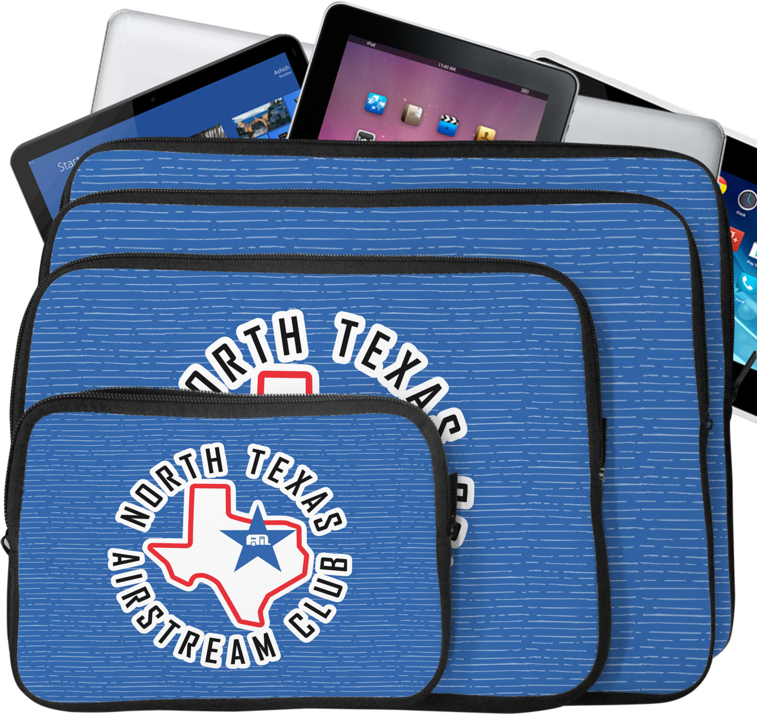 These tablet covers are fabricated from a water-resistant neoprene, and feature a zipper at its top for easy access to your device. The supple, cushioned nature of the neoprene will protect your tablet from the mishaps of daily life. Your personalized design is printed on the front of the I-Pad case, while the remaining sides are black in color. We provide this case in two sizes, in order to best accommodate your device. Our smaller size can fit a tablet with an 11 inch screen, while our larger sleeve is better suited for devices with approximately a 13 inch screen.