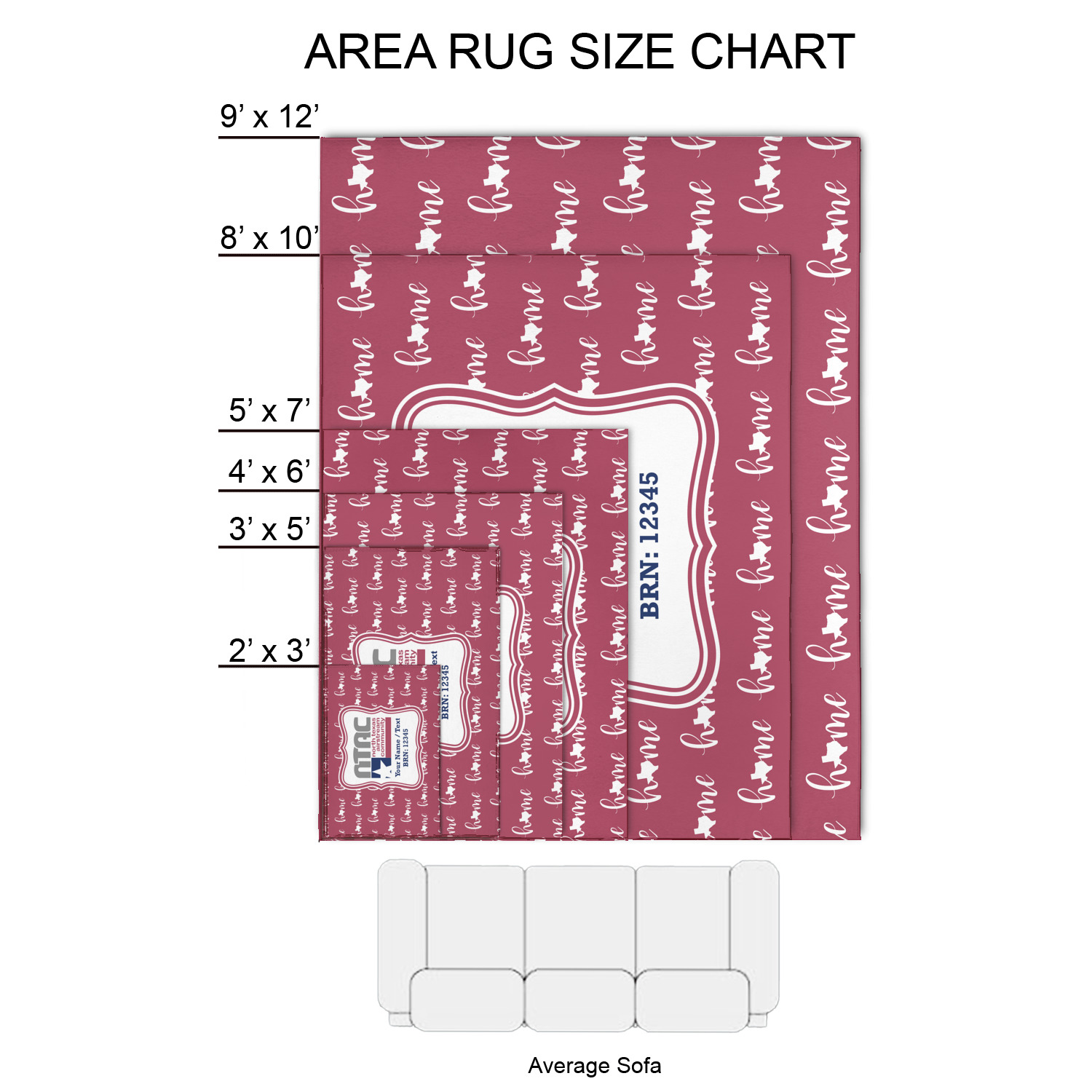 Our area rugs are available in multiple sizes; they are listed below: