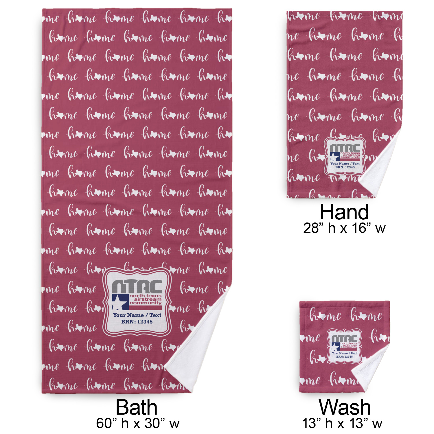 | Product Dimensions | Bath Towel (Approx. 30" x 60") Hand Towel (Approx. 16" x 28") Wash Cloth (Approx. 13" x 13") |