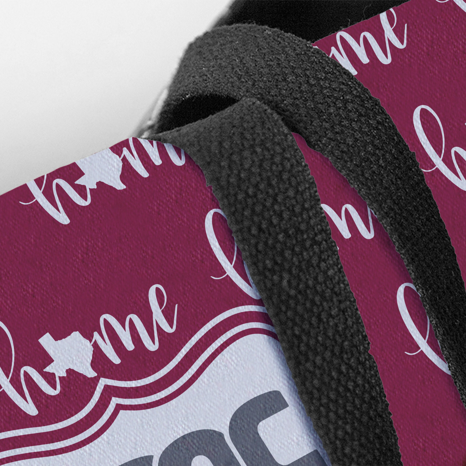 The totes are made from a sturdy canvas material on the outside and are lined with a black poly cotton lining. The beach totes have an approx. 28" black woven handles.