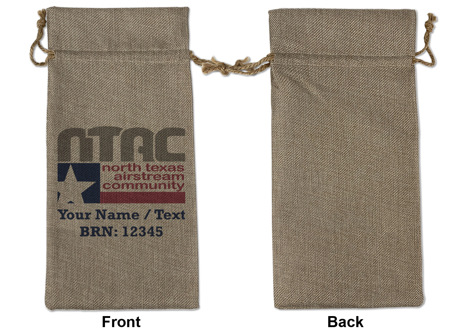 We sell our Burlap Gift Bags in 3 variant sized bags. Made with burlap polyester, each personalized bag can be secured with a twine drawstring pull. Your custom design is available to print on one side or both sides - completely up to you! The sizes of the bags measure approximately 4.5" x 6.5" for the smallest size, 6.5" x 8.0" for the medium size, and 6.5" x 13.5" for the large-sized bag.