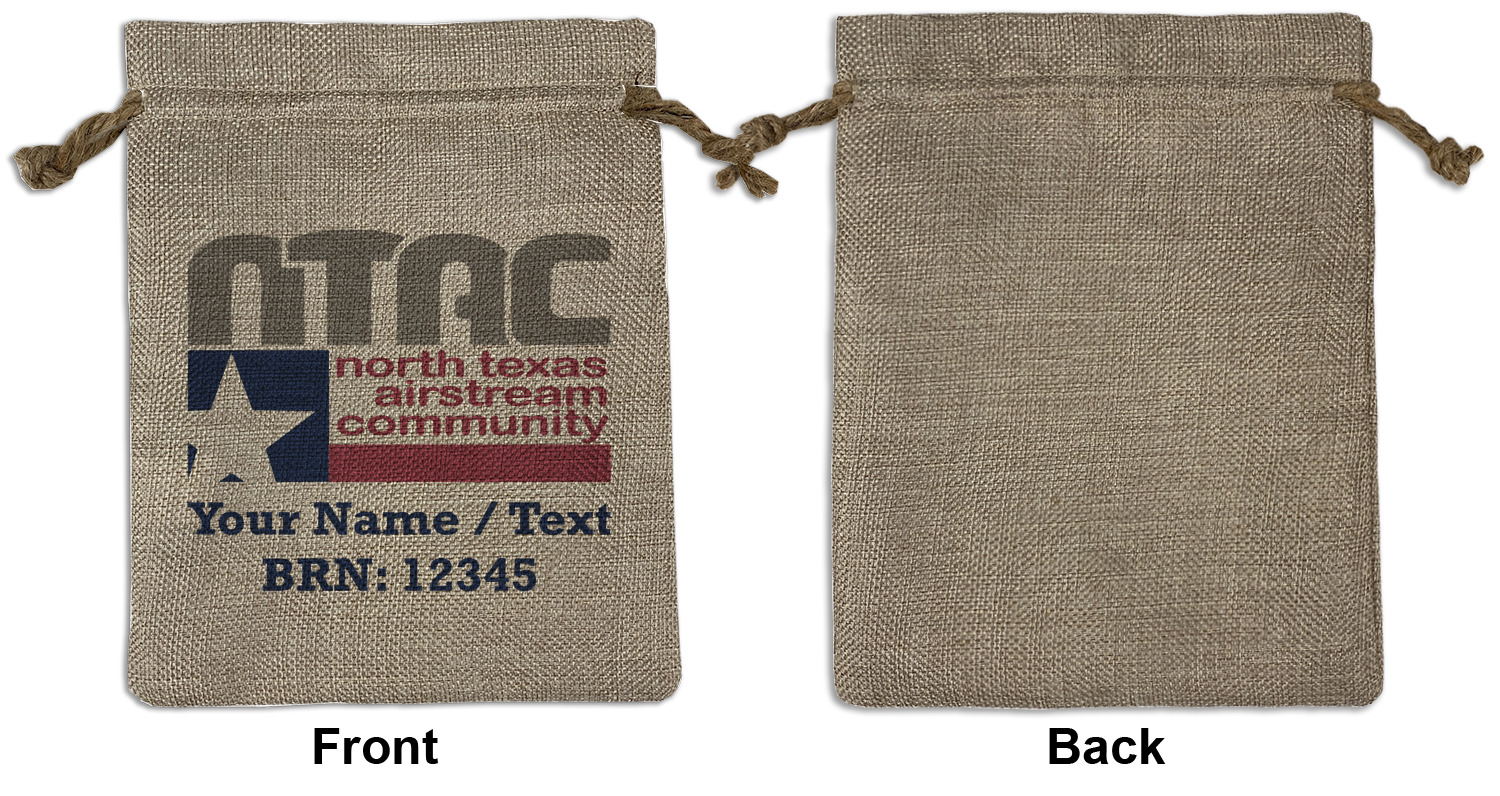 We sell our Burlap Gift Bags in 3 variant sized bags. Made with burlap polyester, each personalized bag can be secured with a twine drawstring pull. Your custom design is available to print on one side or both sides - completely up to you! The sizes of the bags measure approximately 4.5" x 6.5" for the smallest size, 6.5" x 8.0" for the medium size, and 6.5" x 13.5" for the large-sized bag.