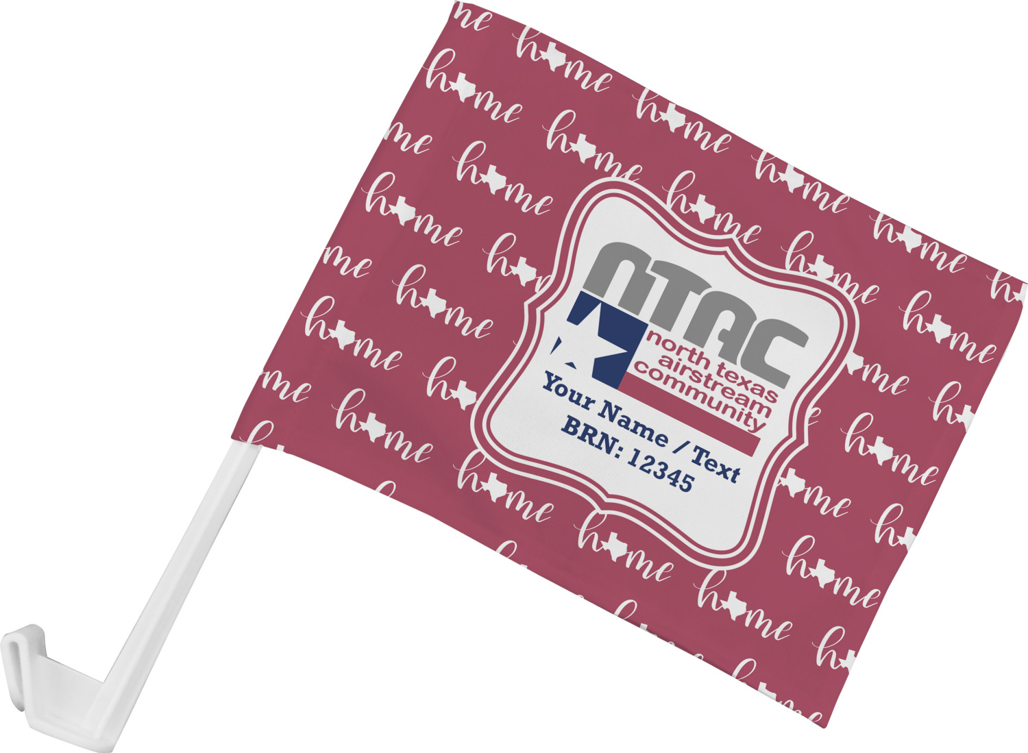 Our personalized flags are made from a durable, yet lightweight cloth that will proudly bear your logo or design of choice, while withstanding the outside elements. We have two size options - 8" x 11" and 11" x 15". Both come with a flag pole which includes a clip that secures the pole to the side window, whether it is rolled up or down. The flags are printed on both sides to display your design from all directions.